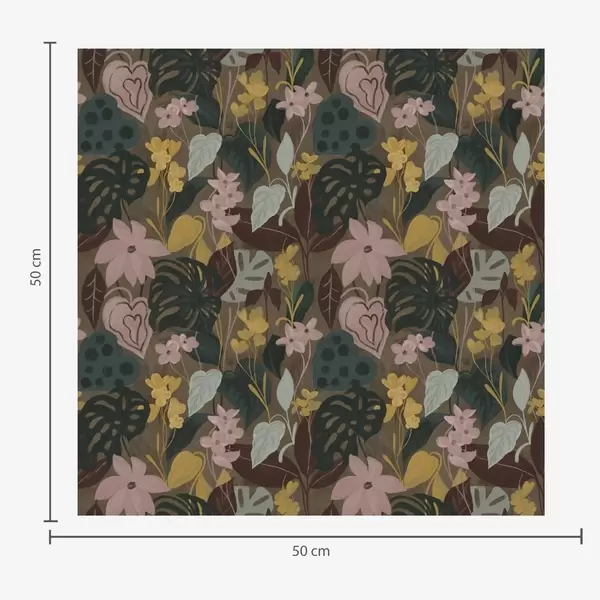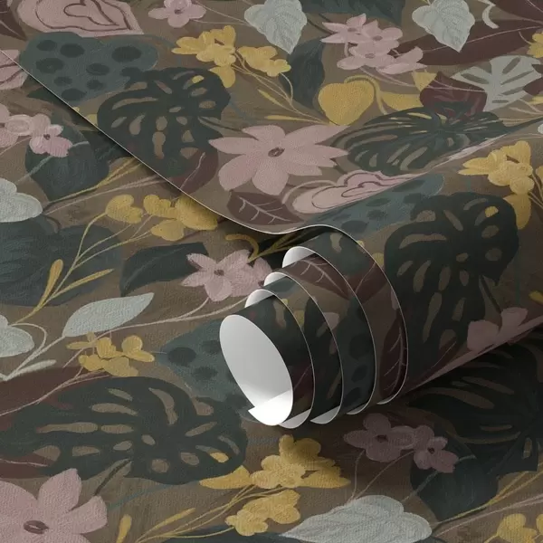 Papel de parede Folhas e flores tropicais escuras numa pintura densa pintura densa Nr. a00244