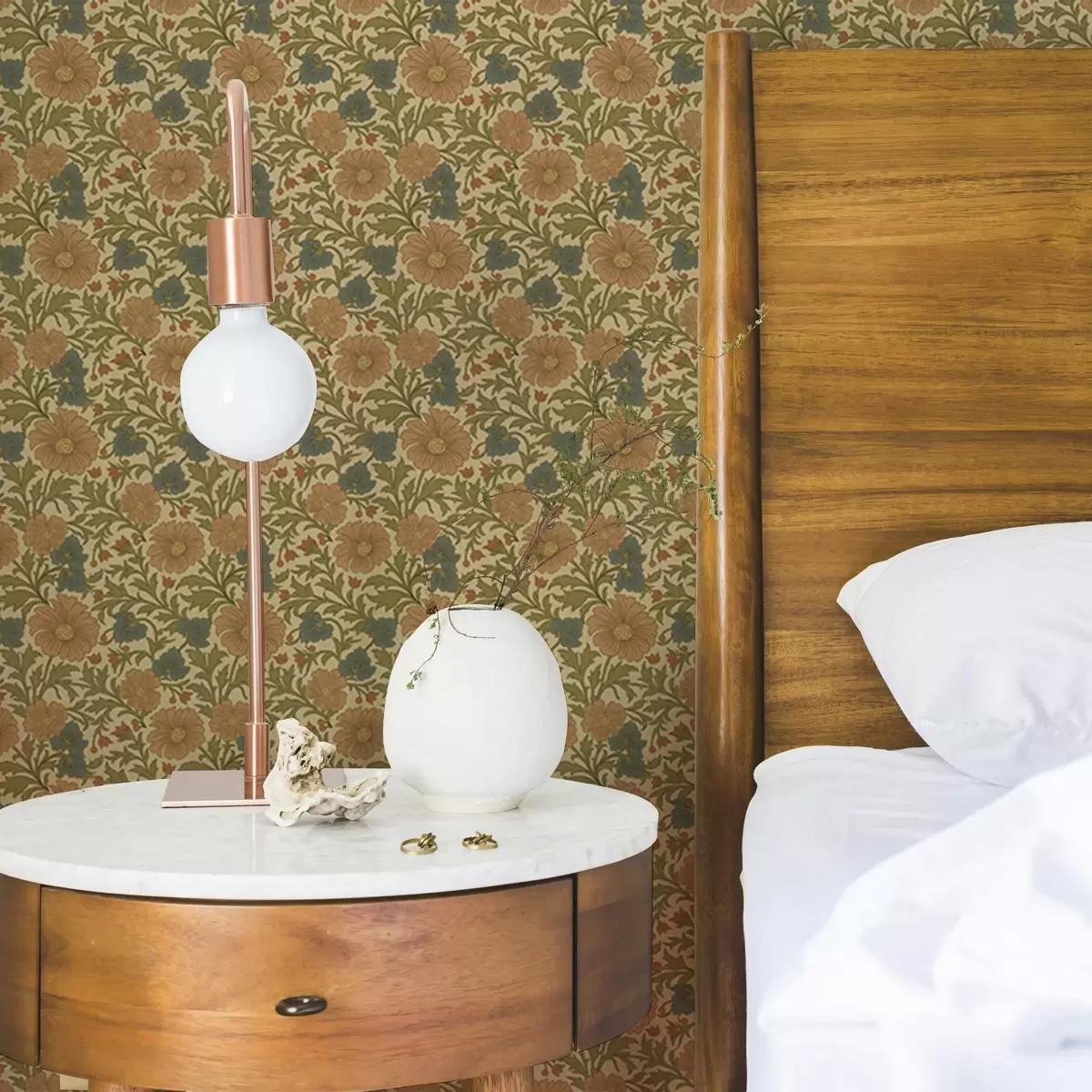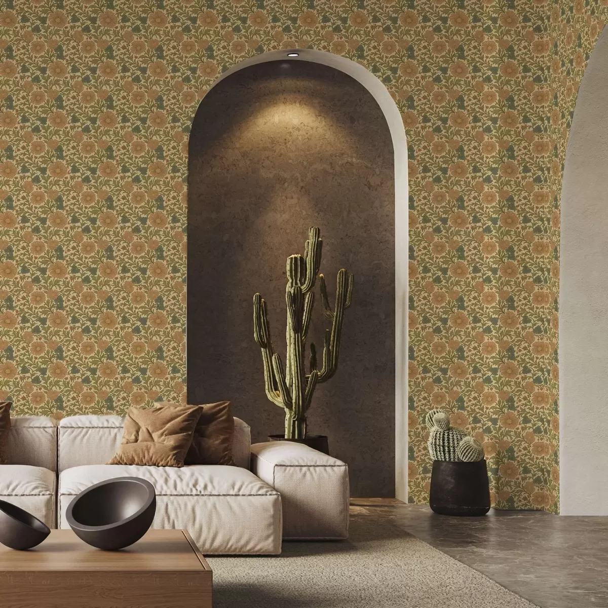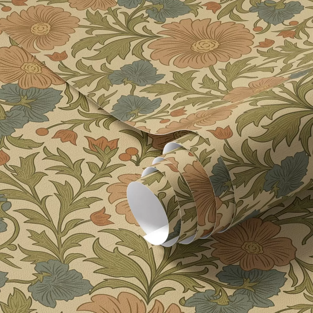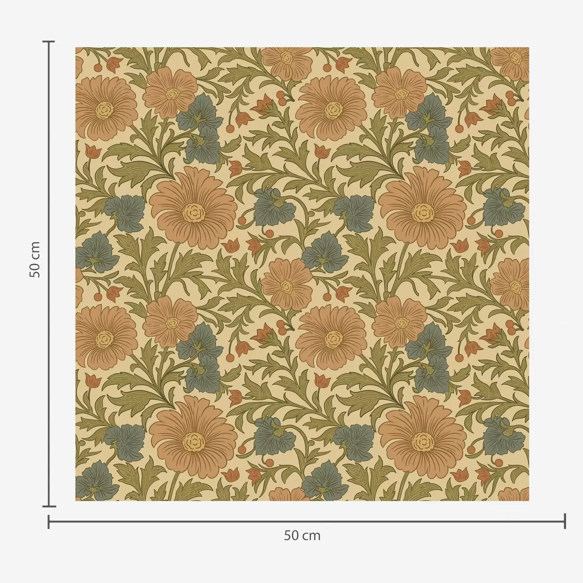 Papel de parede Padrão retro com flores cor de laranja e azuis Nr. a00245