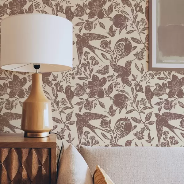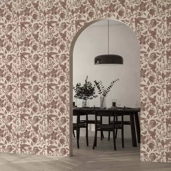 Papel de parede Pássaros, romãs e flores em estilo vintage Nr. a00263