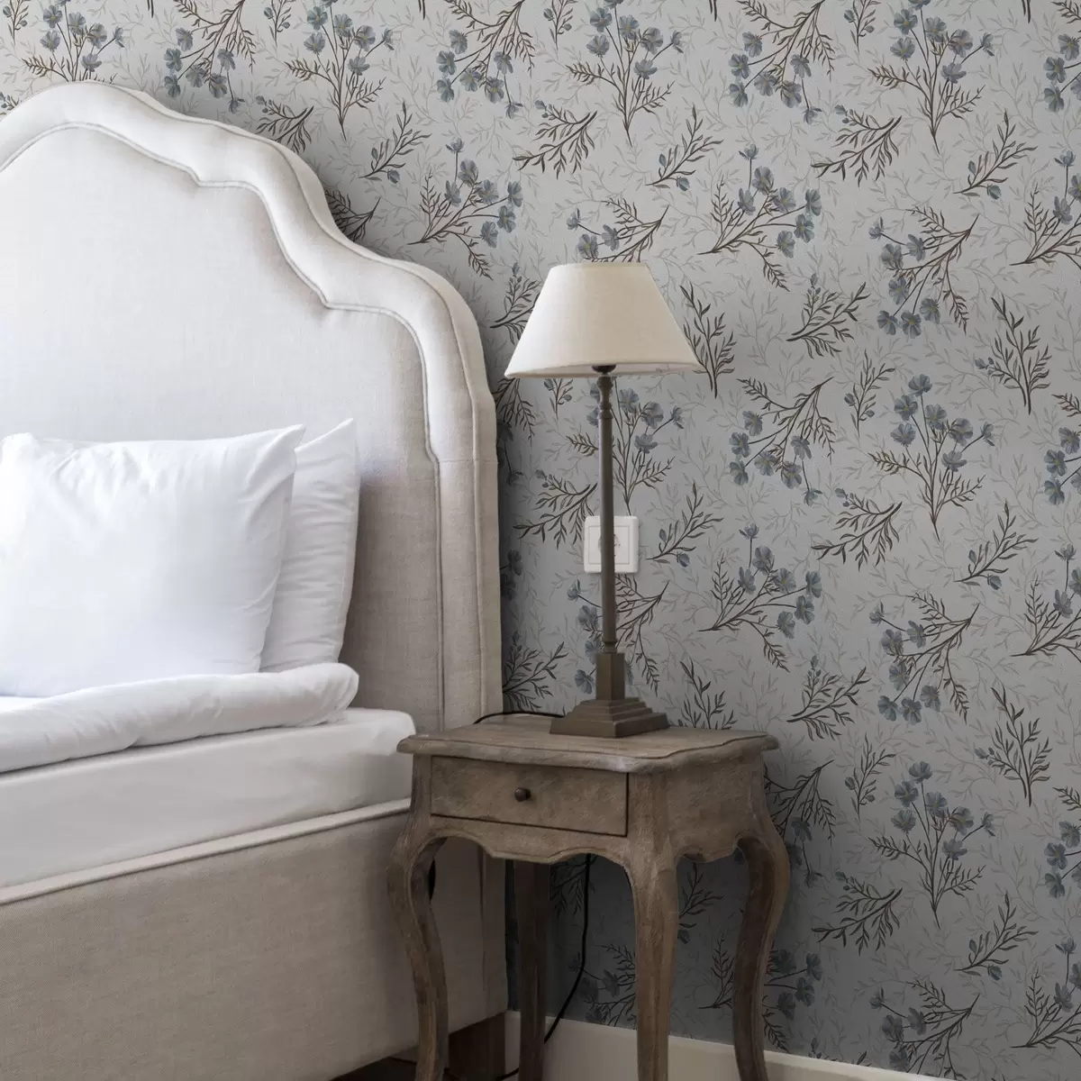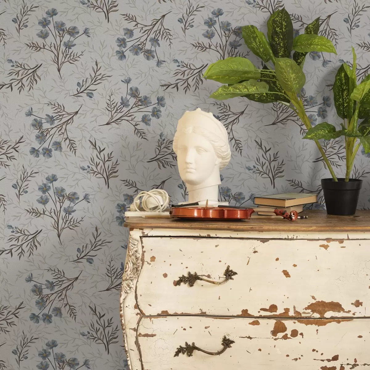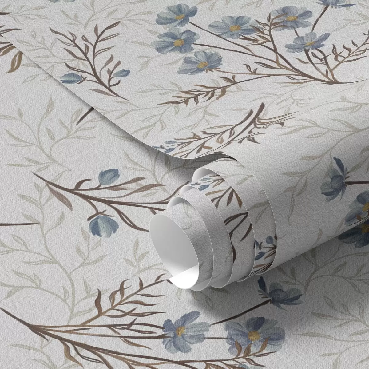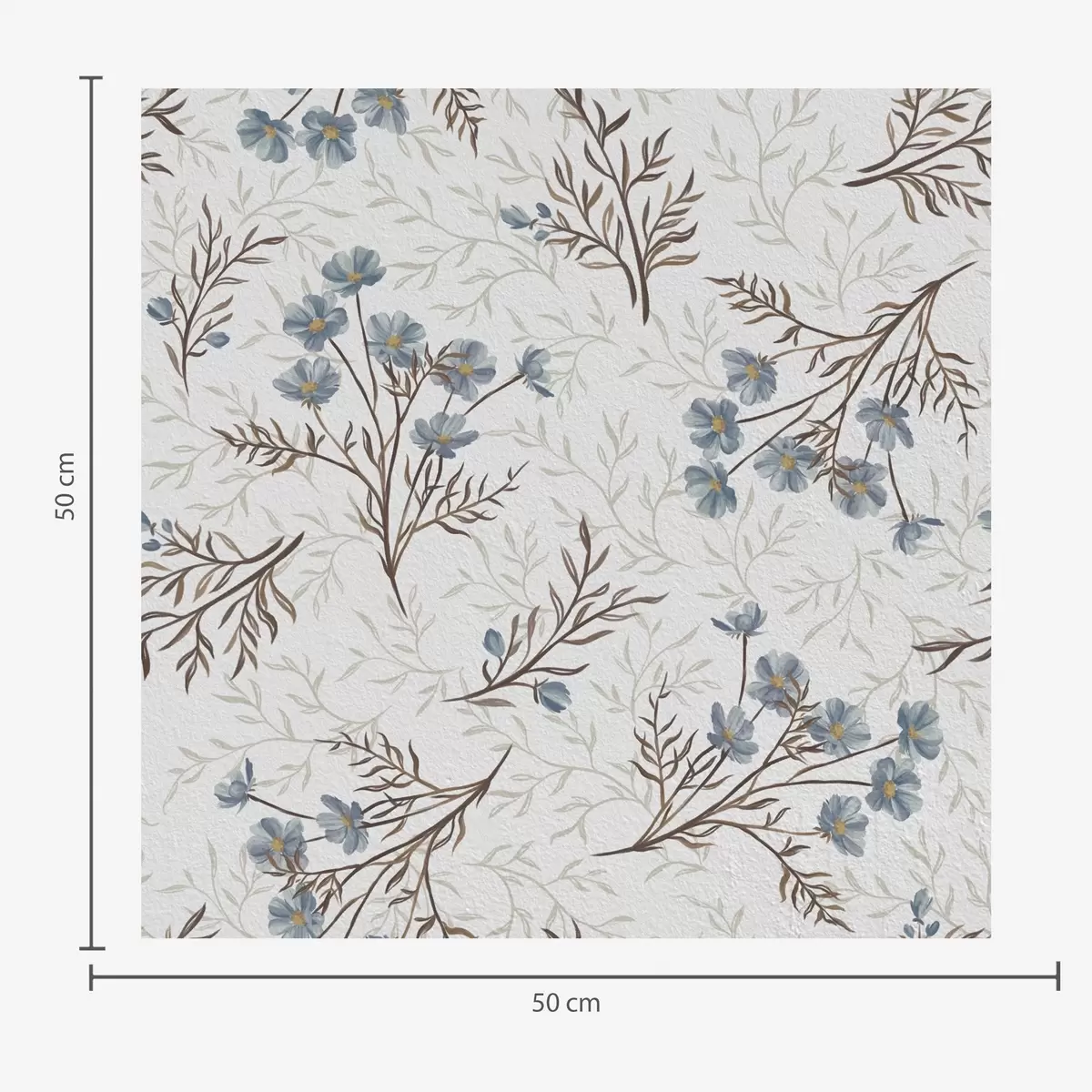 Papel de parede Flores azuis e ramos claros sobre um fundo branco Nr. a00265v1