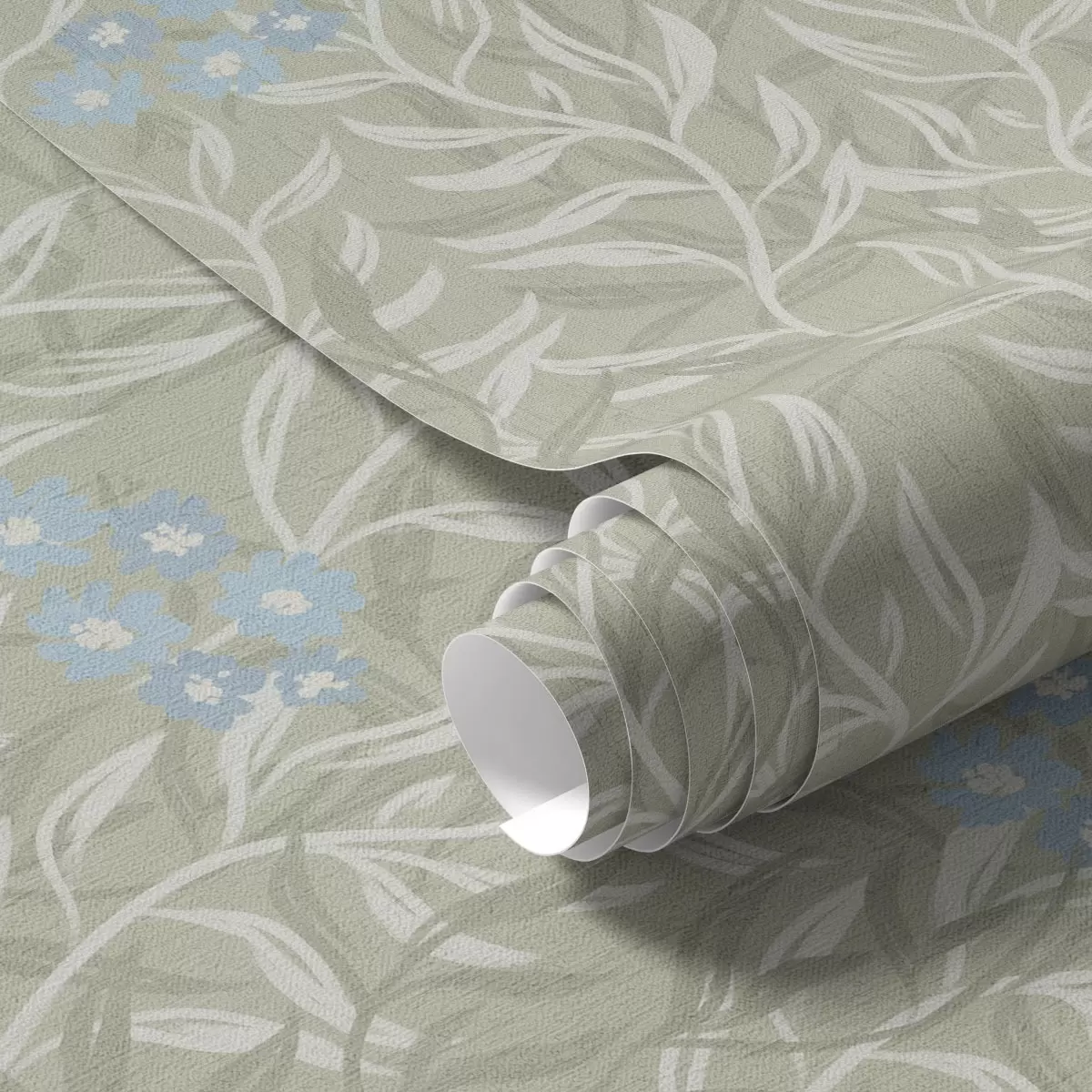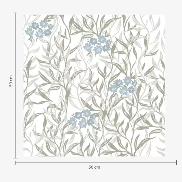 Papel de parede Fundo verde com ramos brancos e flores azuis Nr. a00268v1