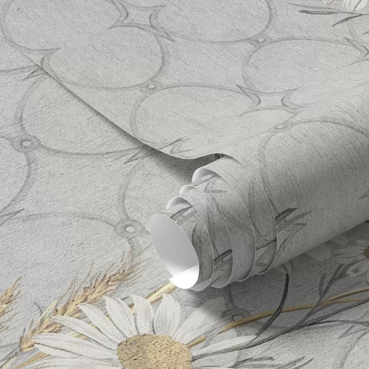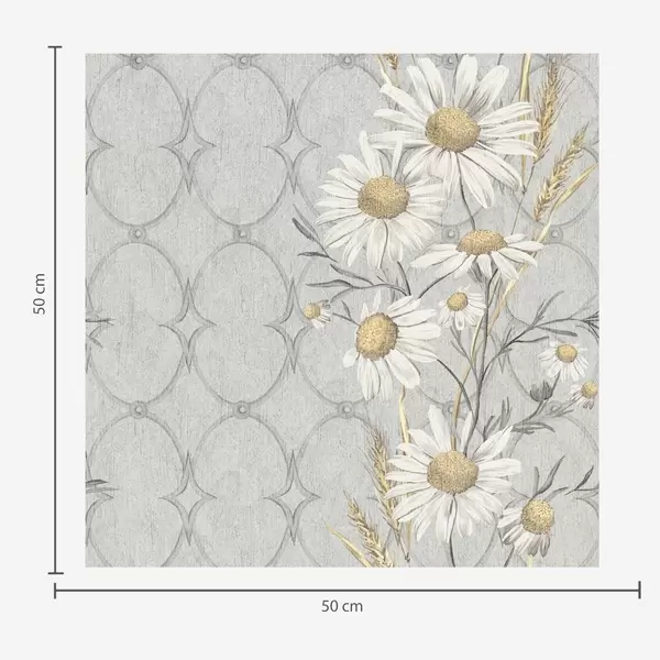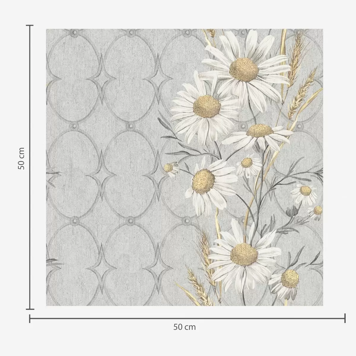 Papel de parede Margaridas sobre fundo cinzento com padrão geométrico Nr. a00269