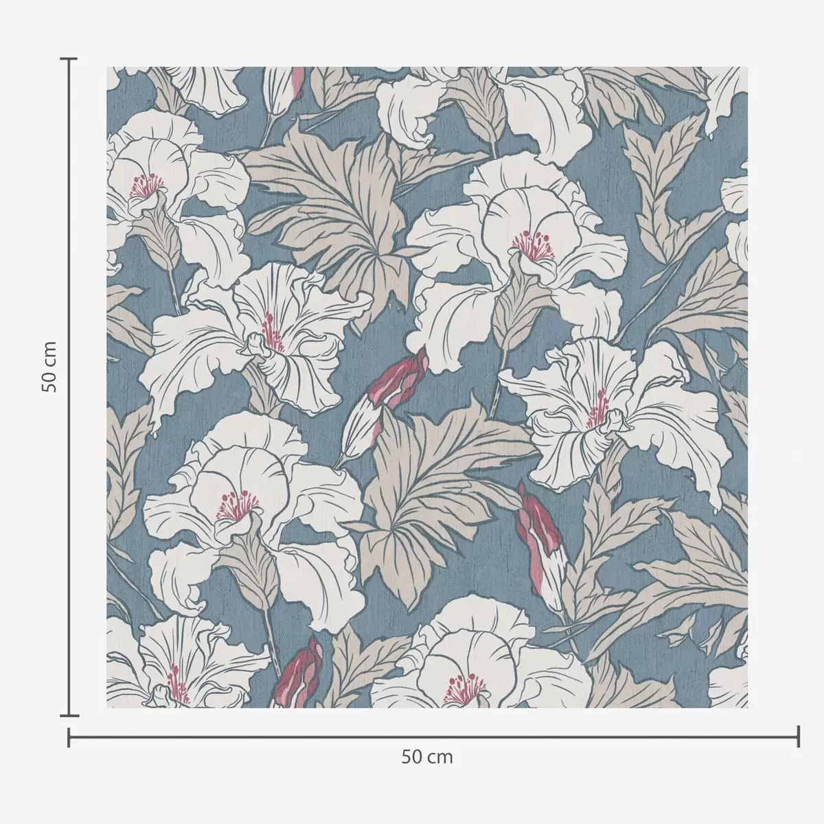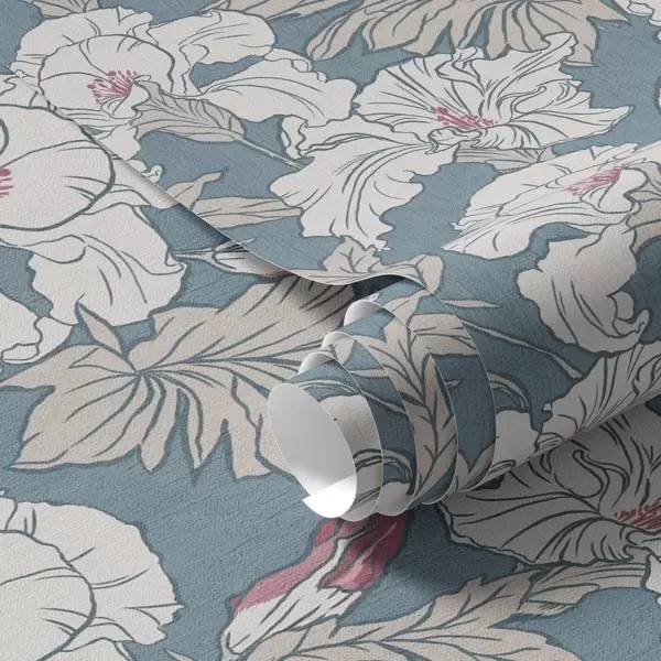 Papel de parede Hibisco branco sobre fundo azul com padrão de contorno Nr. a00272v1