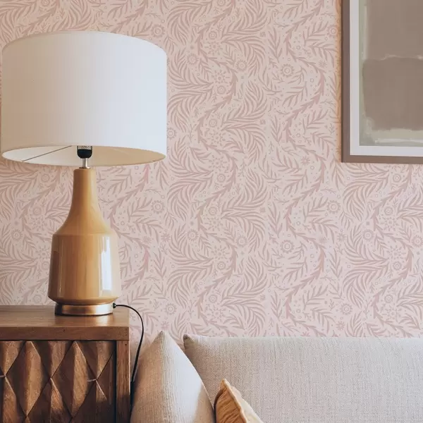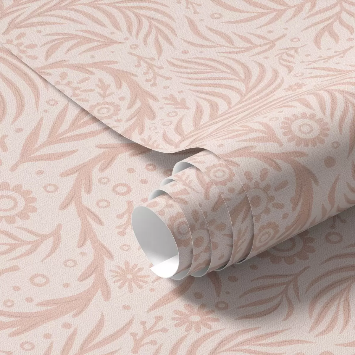 Papel de parede Elementos florais cor-de-rosa pálido sobre um fundo cor-de-rosa Nr. a00290