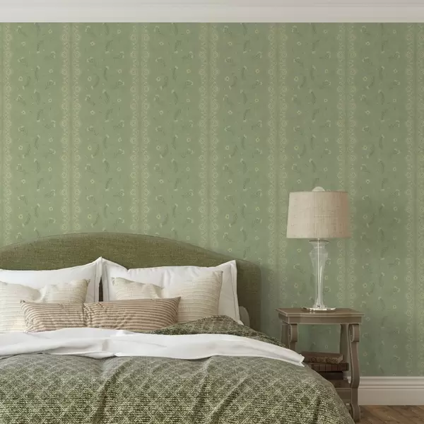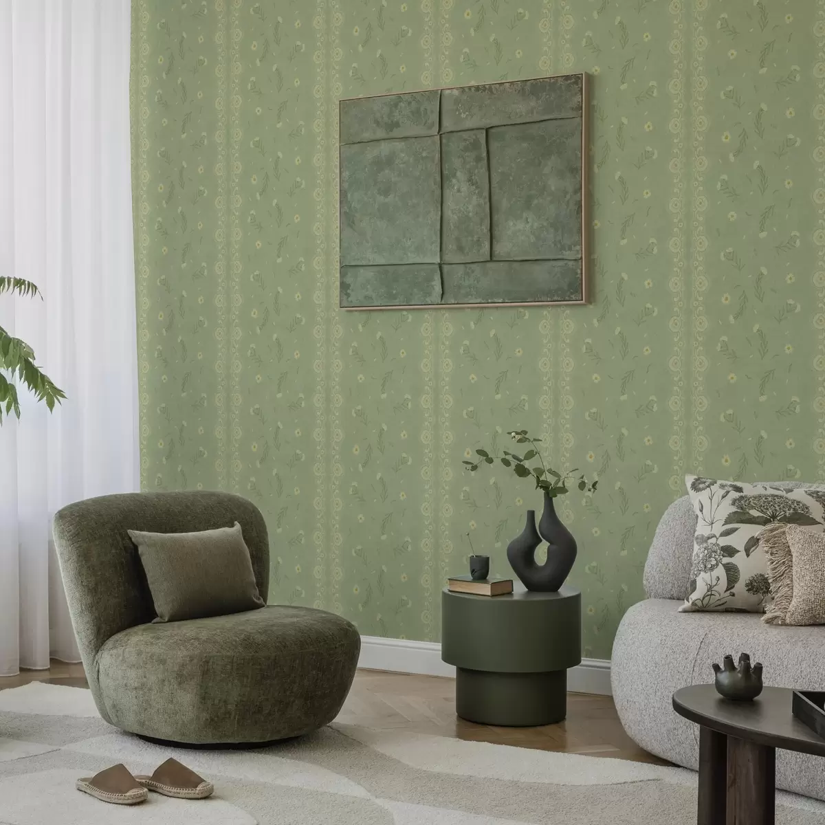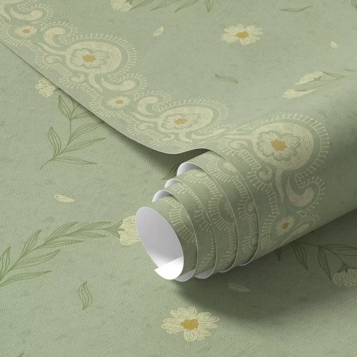 Papel de parede Fundo verde com margaridas e rebordo de renda Nr. a00291