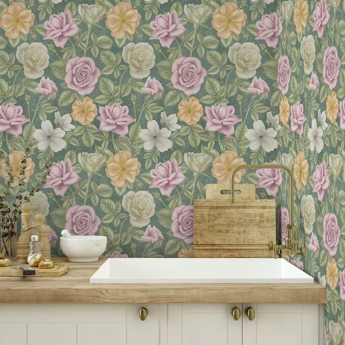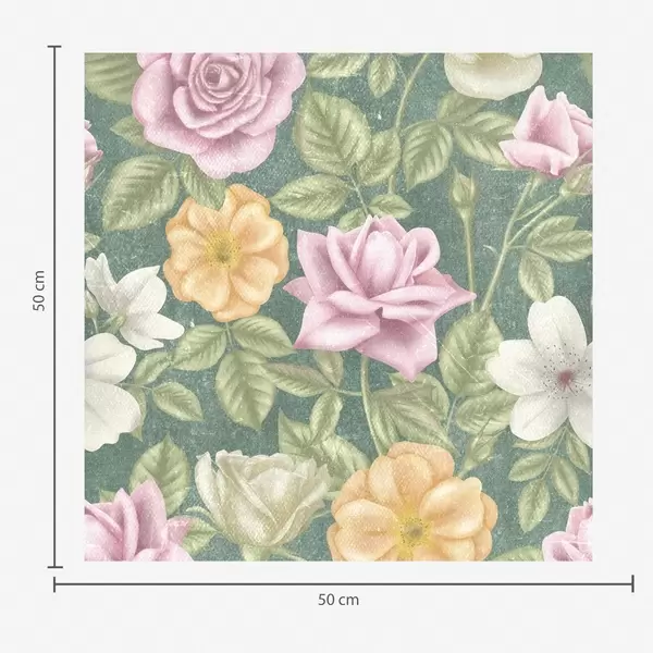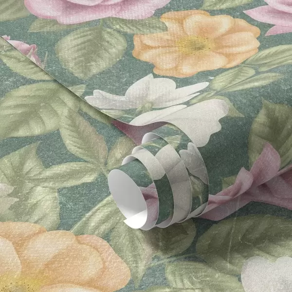 Papel de parede Rosas cor-de-rosa e amarelas sobre um fundo verde Nr. a00300