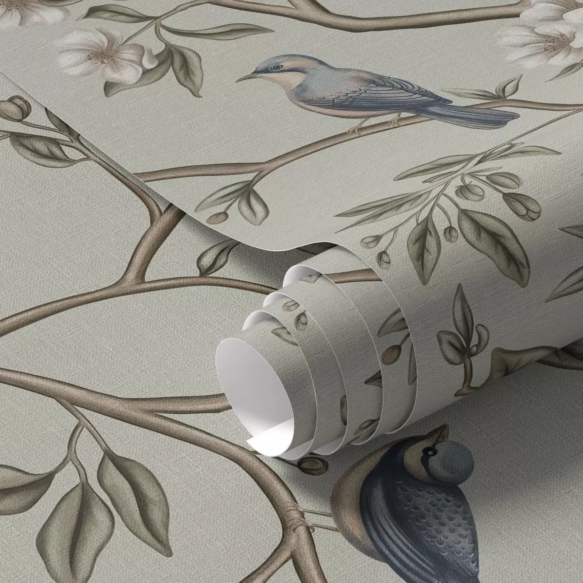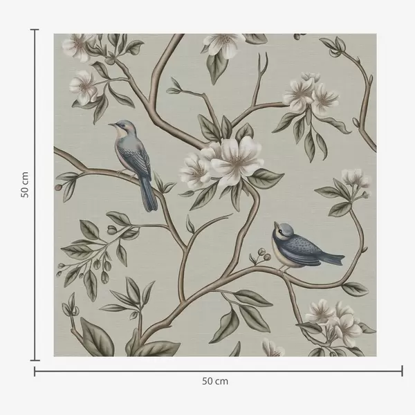 Papel de parede Ramos com pássaros e flores brancas sobre um fundo delicado Nr. a00303
