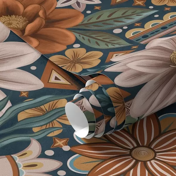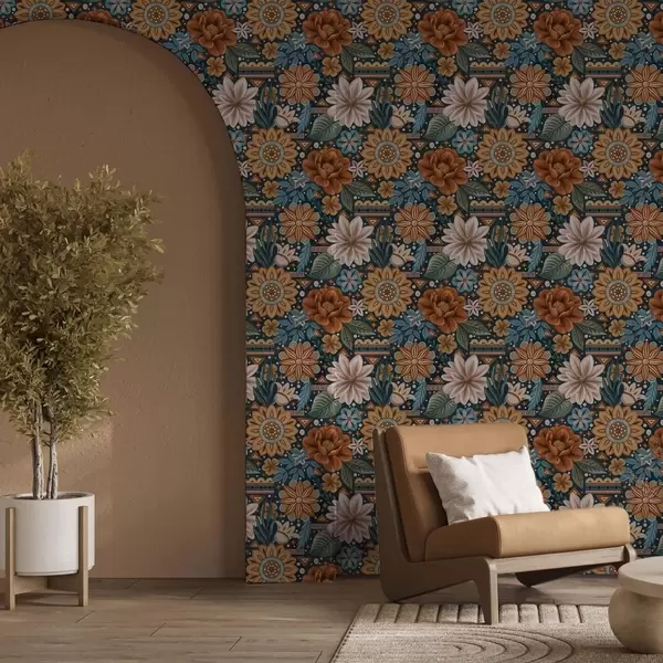 Papel de parede Flores decorativas brilhantes com elementos geométricos Nr. a00305