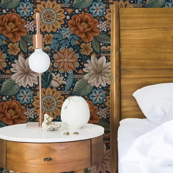 Papel de parede Flores decorativas brilhantes com elementos geométricos Nr. a00305