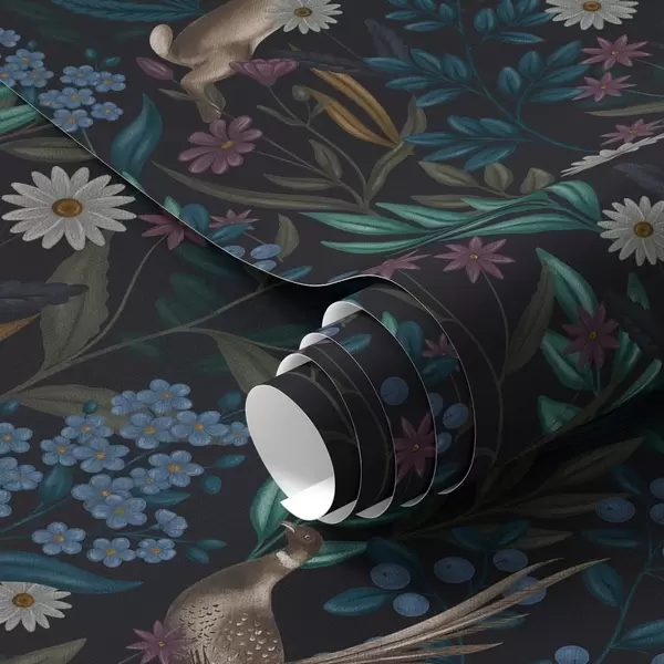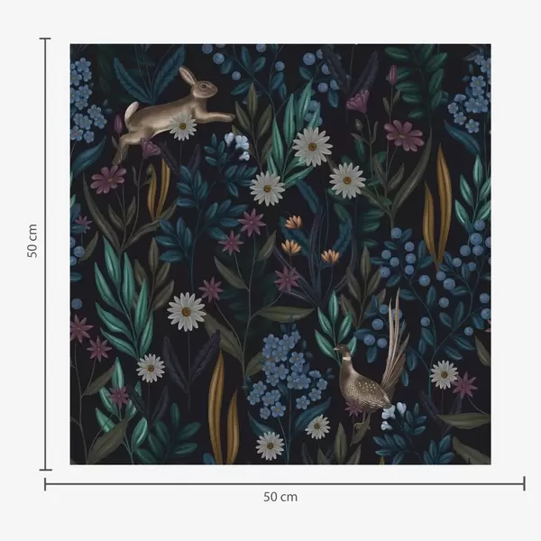 Papel de parede Floresta escura com flores, lebre e um pássaro Nr. a00310