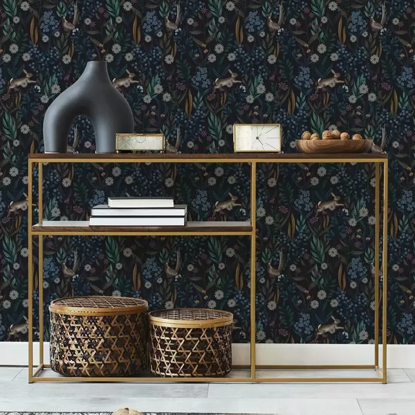 Papel de parede Floresta escura com flores, lebre e um pássaro Nr. a00310