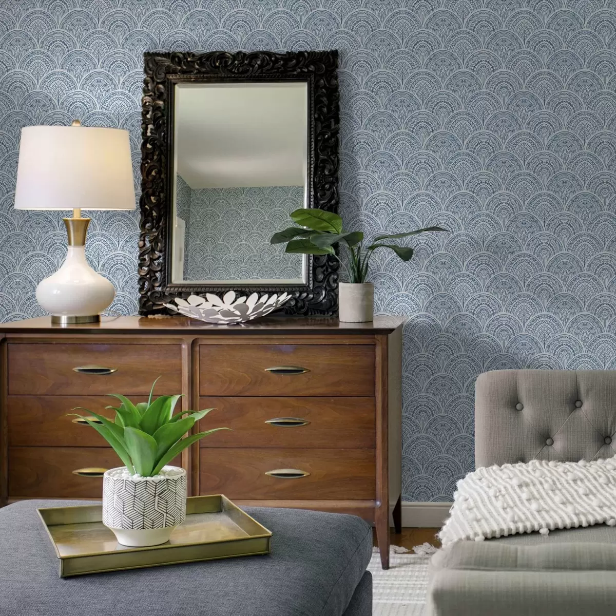 Papel de parede Ornamento azul com arcos e motivos Nr. a00332