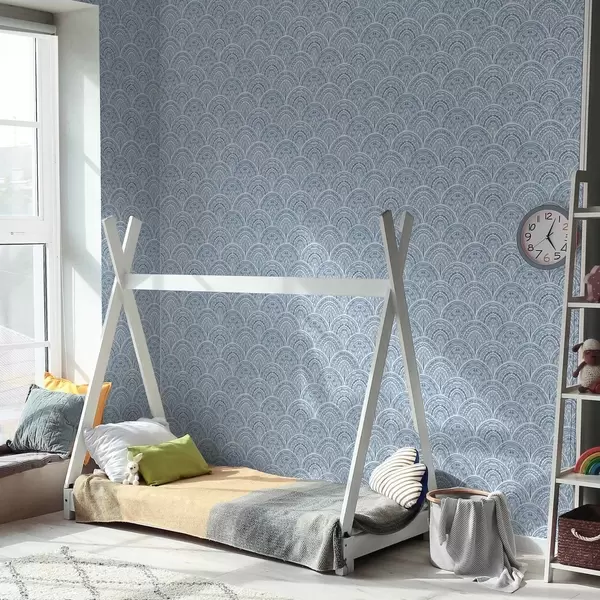 Papel de parede Ornamento azul com arcos e motivos Nr. a00332