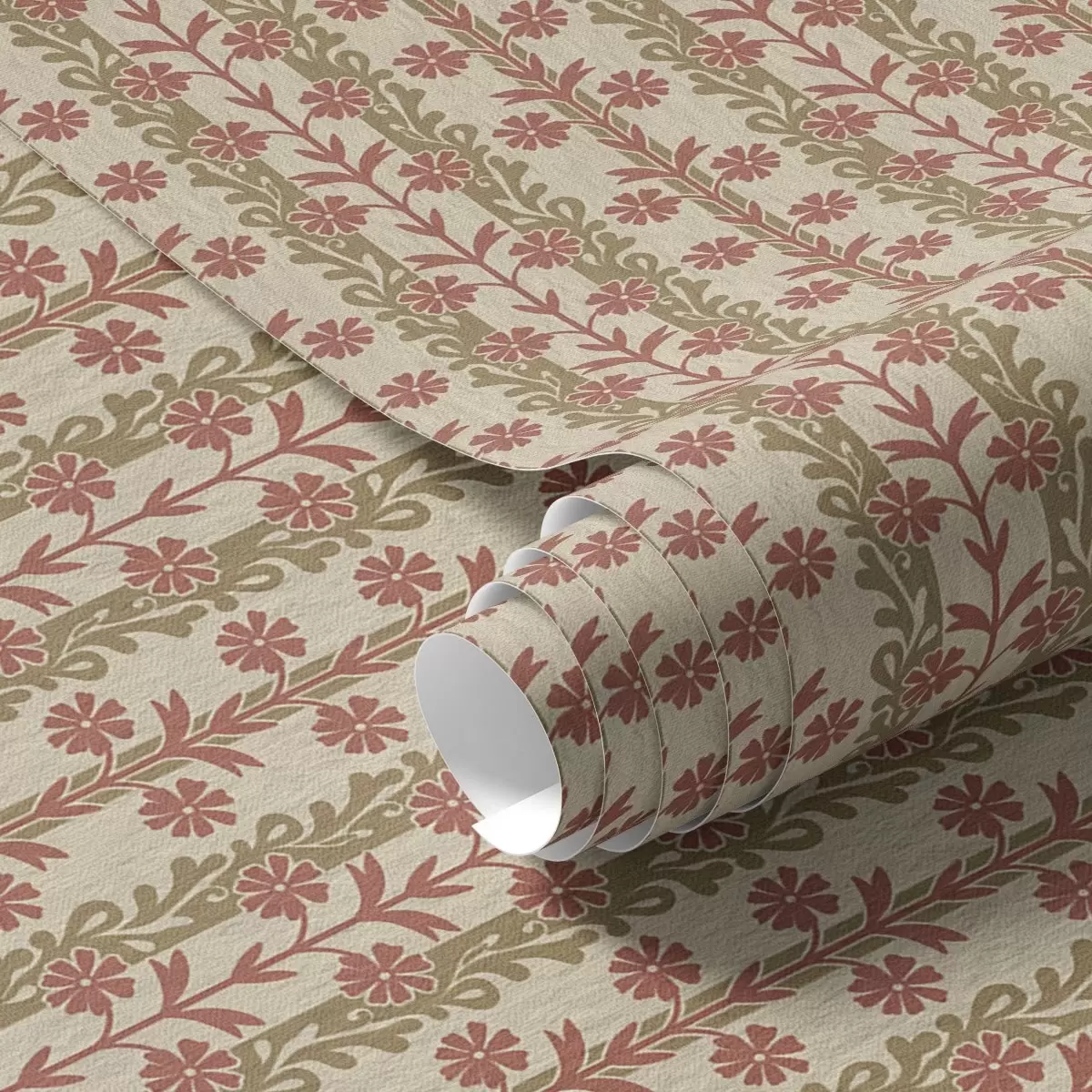 Papel de parede Ornamento às riscas com flores vermelhas Nr. a00341