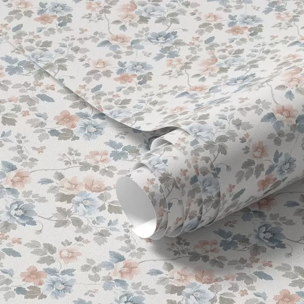 Papel de parede Pequeno ornamento floral em tons de azul e coral Nr. a00347