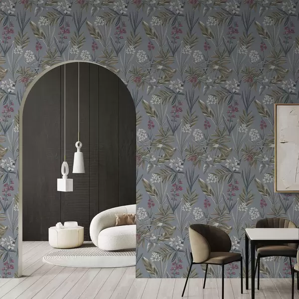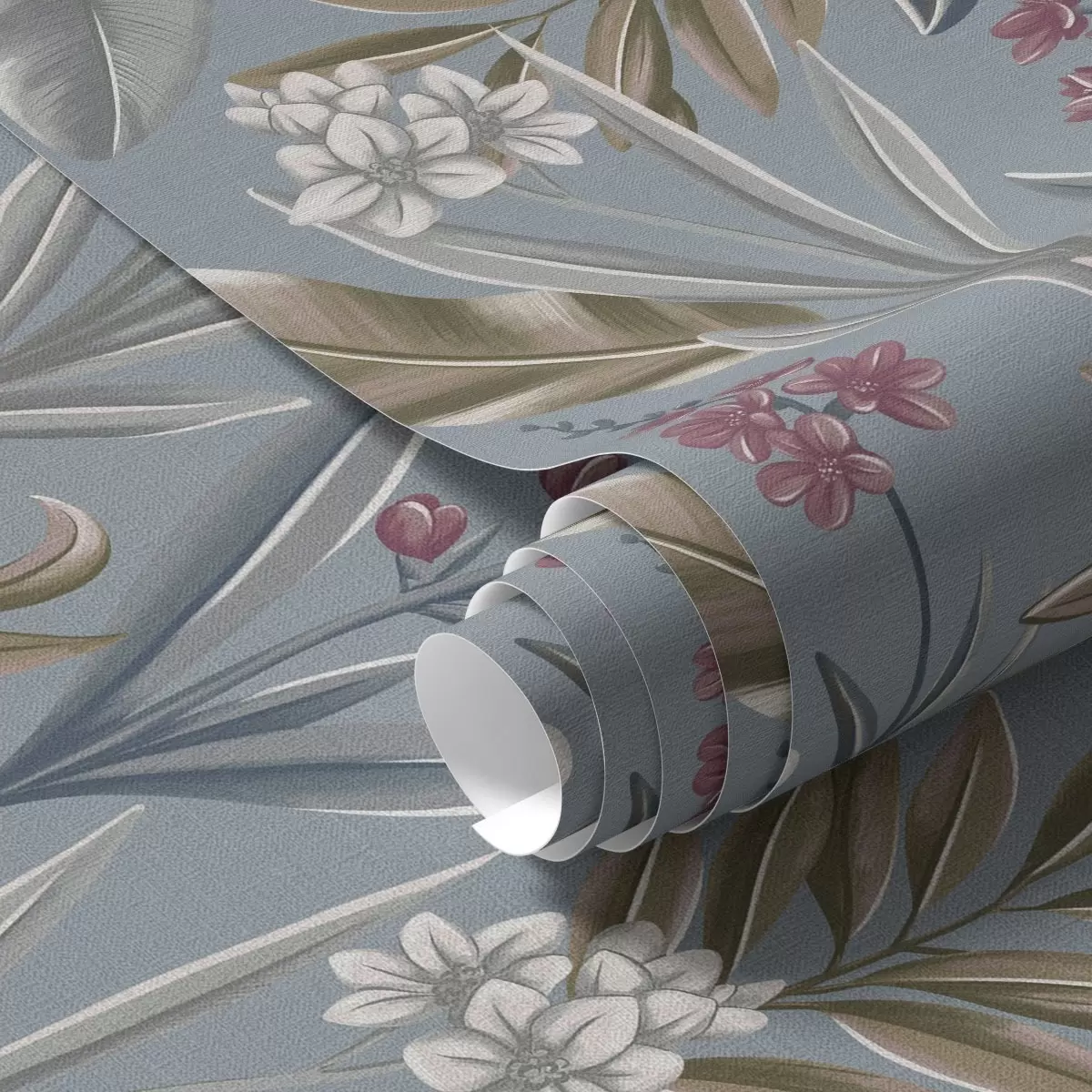 Papel de parede Ramos florais sobre um fundo cinzento-azulado Nr. a00350