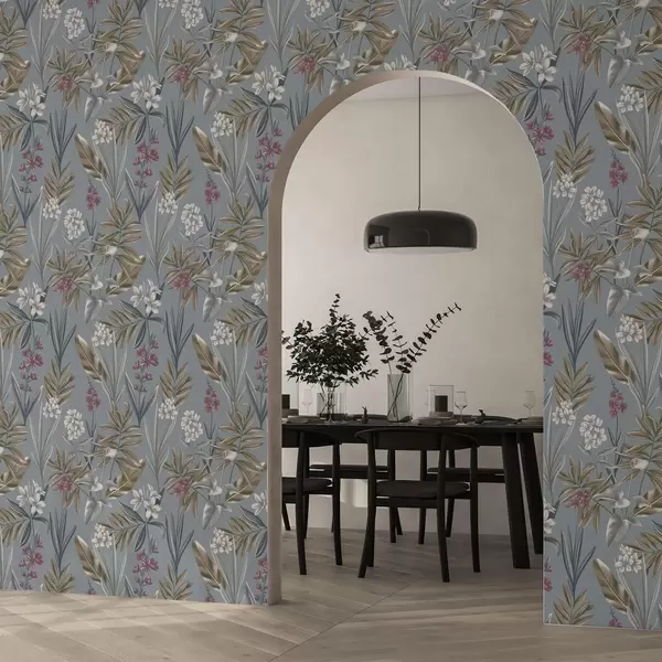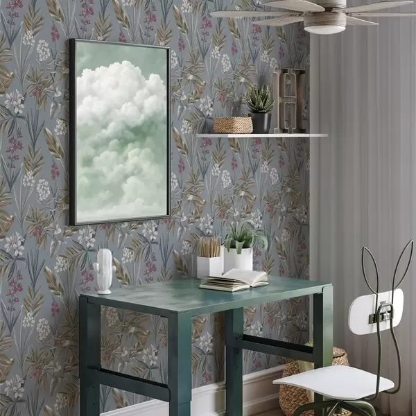 Papel de parede Ramos florais sobre um fundo cinzento-azulado Nr. a00350