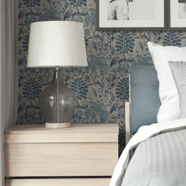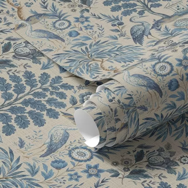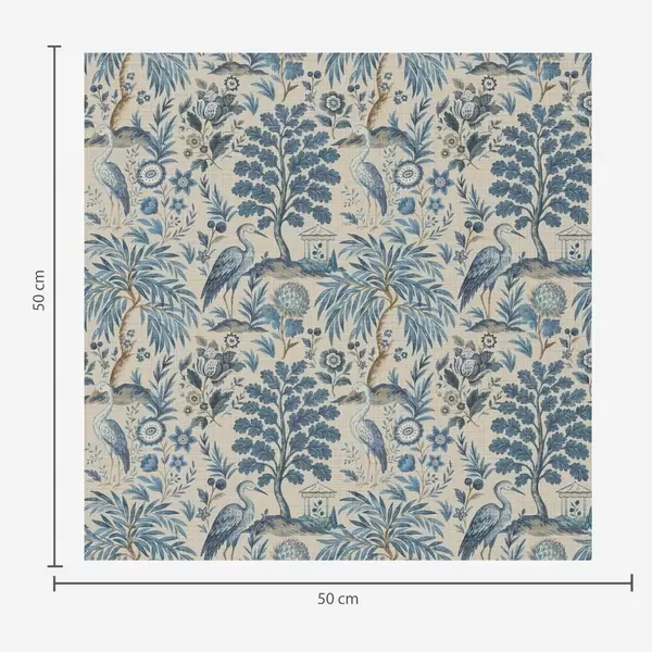 Papel de parede Estilo Toile de Jouy com pássaros azuis e árvores tropicais Nr. a00382