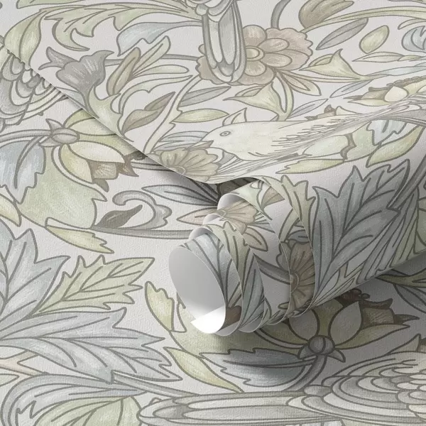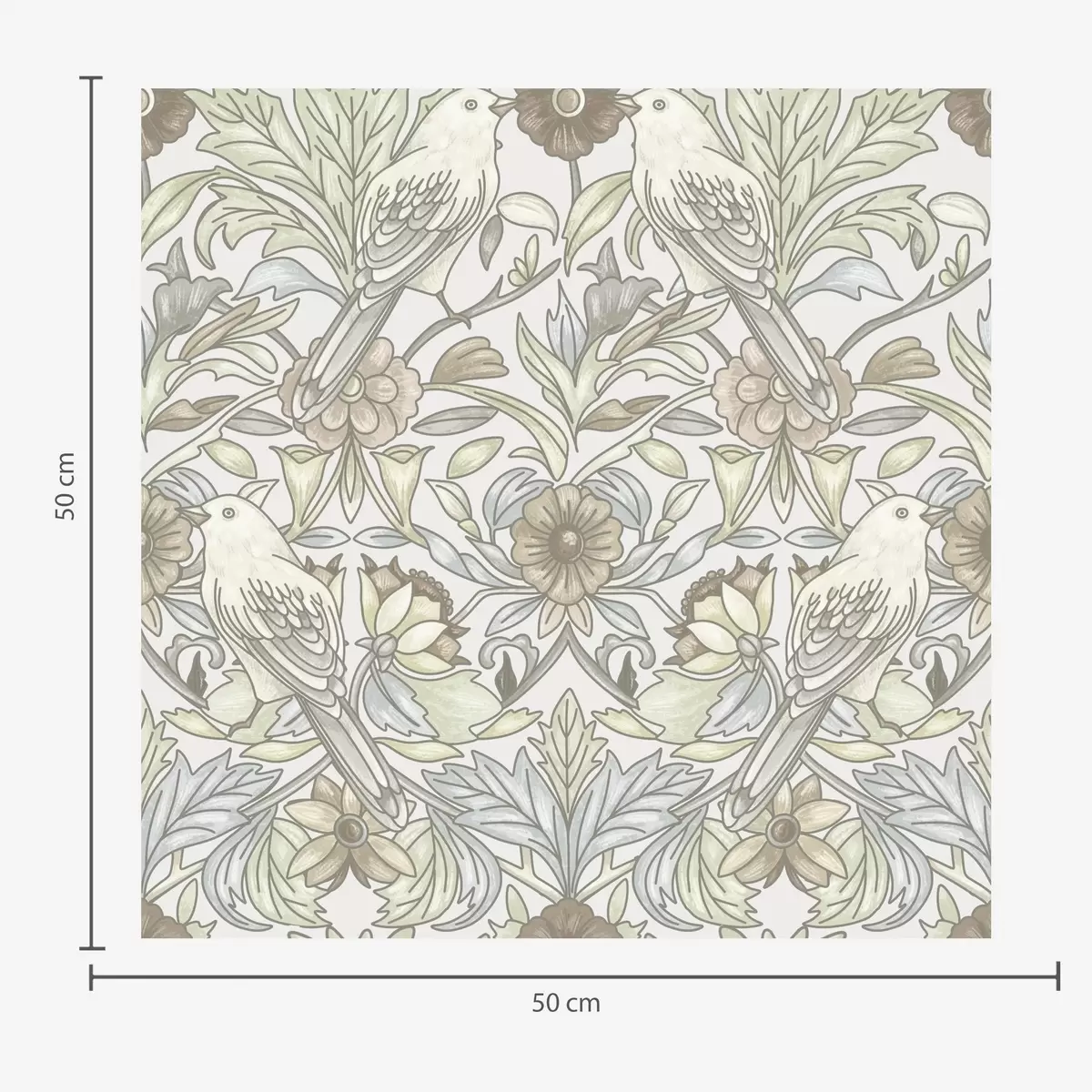 Papel de parede Pássaros Art Nouveau e flores estilizadas em pastel Nr. a00385