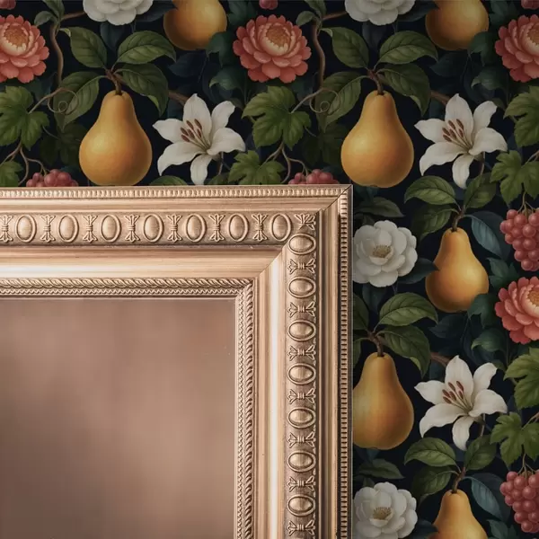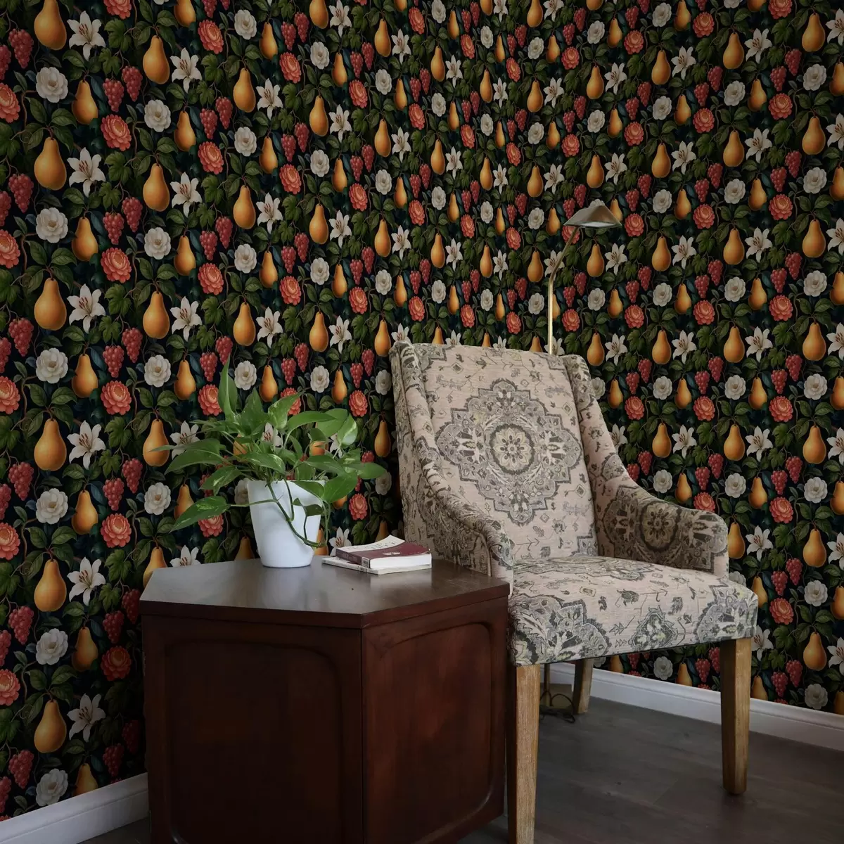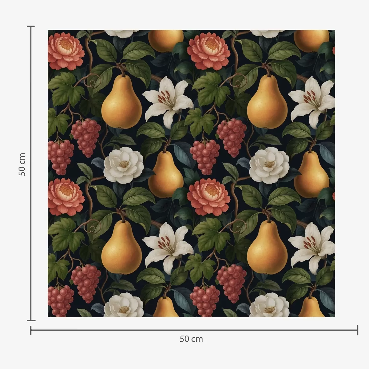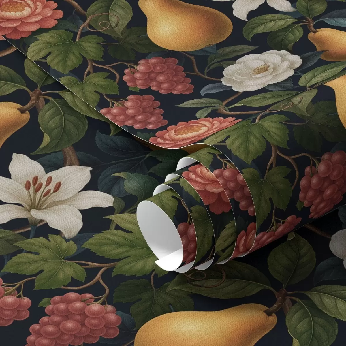 Papel de parede Frutos e flores barrocos sobre um fundo escuro dramático Nr. a00387