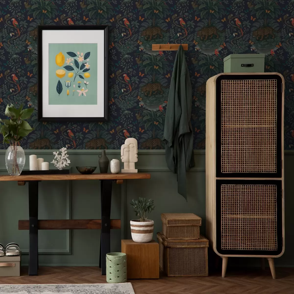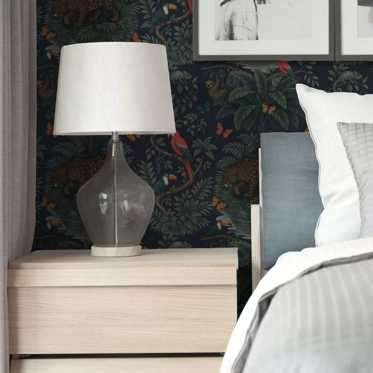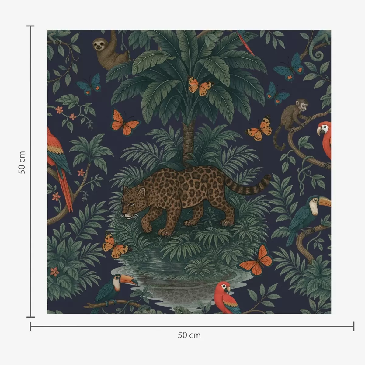 Papel de parede Selva tropical com leopardo, leopardo, papagaios e borboletas Nr. a00388
