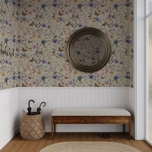 Papel de parede Flores silvestres e borboletas em estilo aguarela suave Nr. a00389