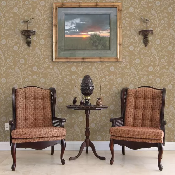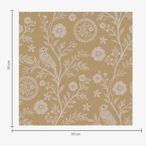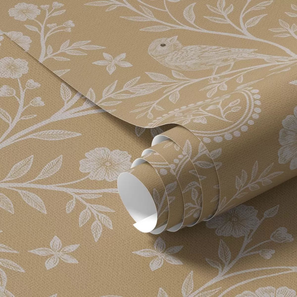 Papel de parede Esboço delicado de um pássaro branco e de uma flor pássaro branco e flor sobre fundo ocre Nr. a00393