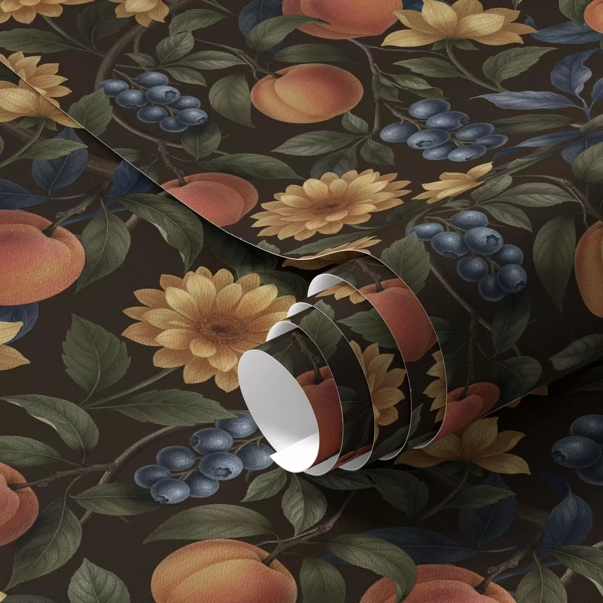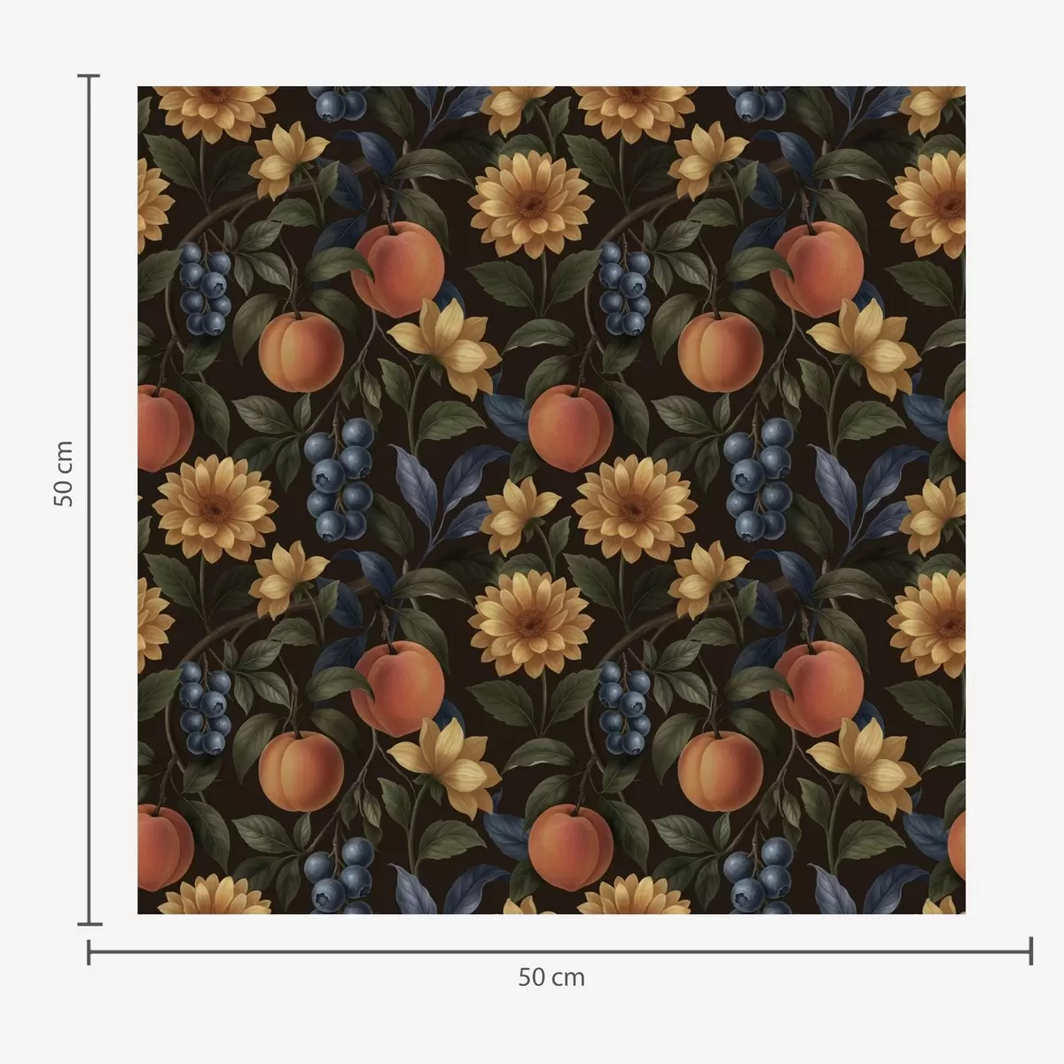 Papel de parede Frutas e flores amarelas sobre fundo botânico escuro Nr. a00395