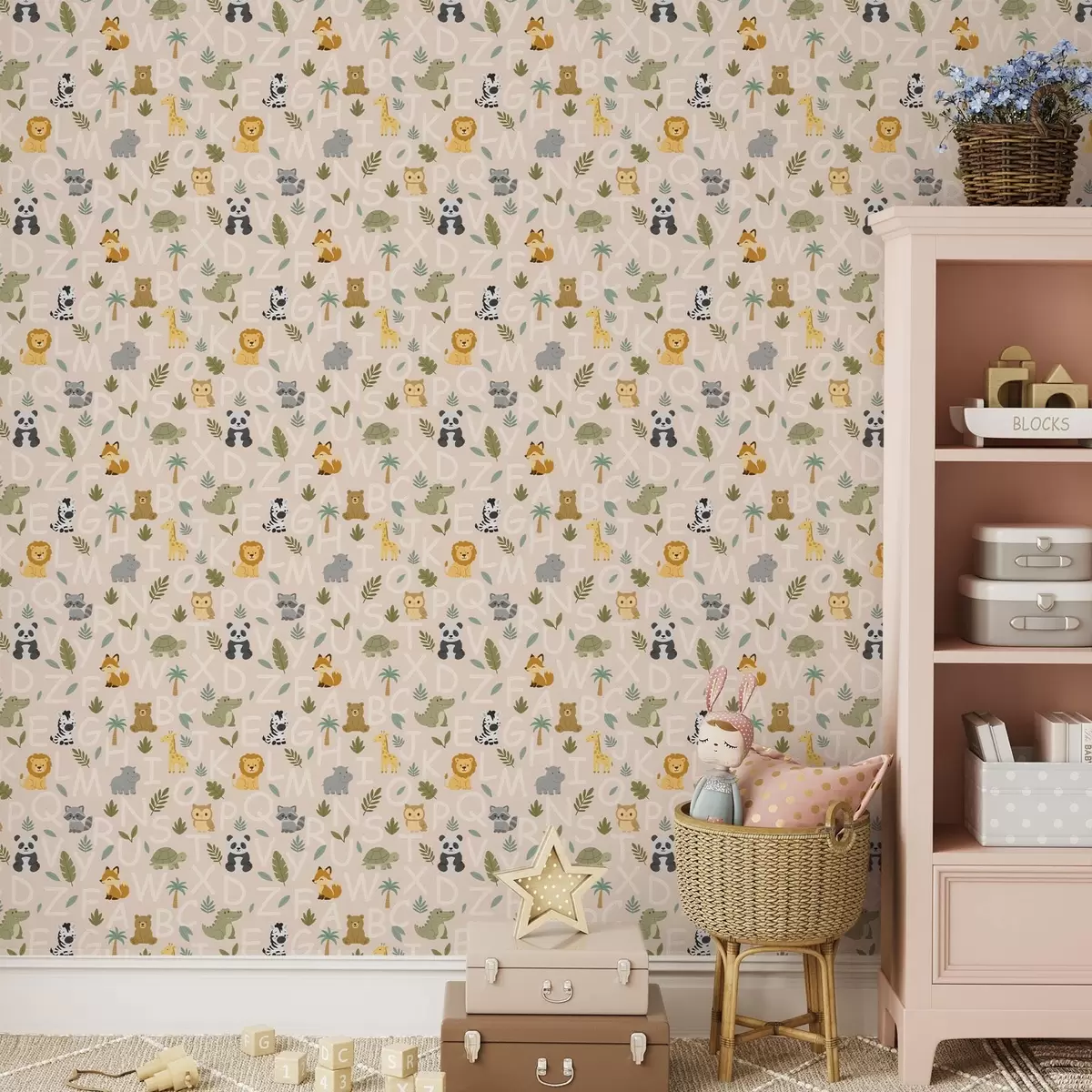 Papel de parede Alfabeto com animais e plantas giros para crianças Nr. a00400
