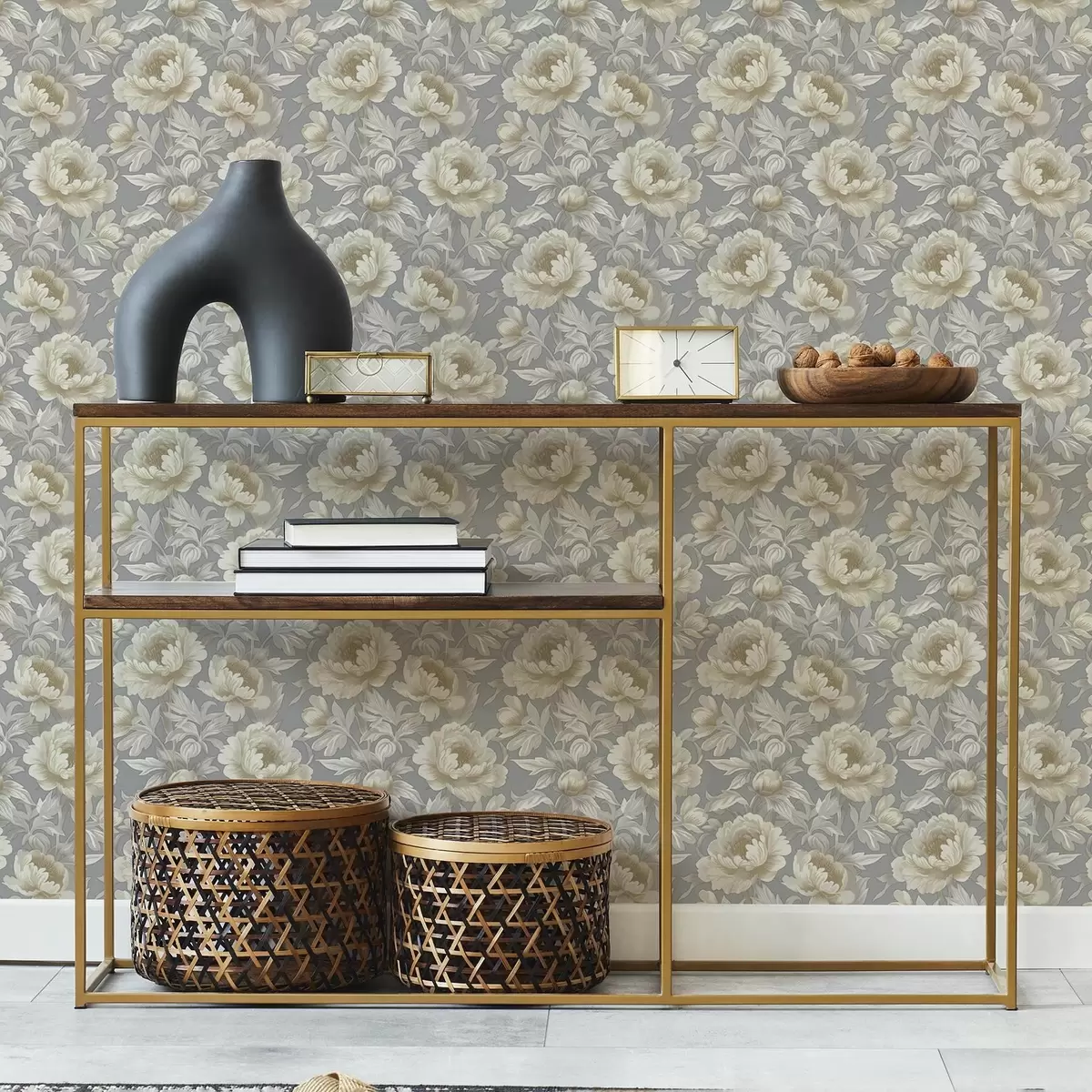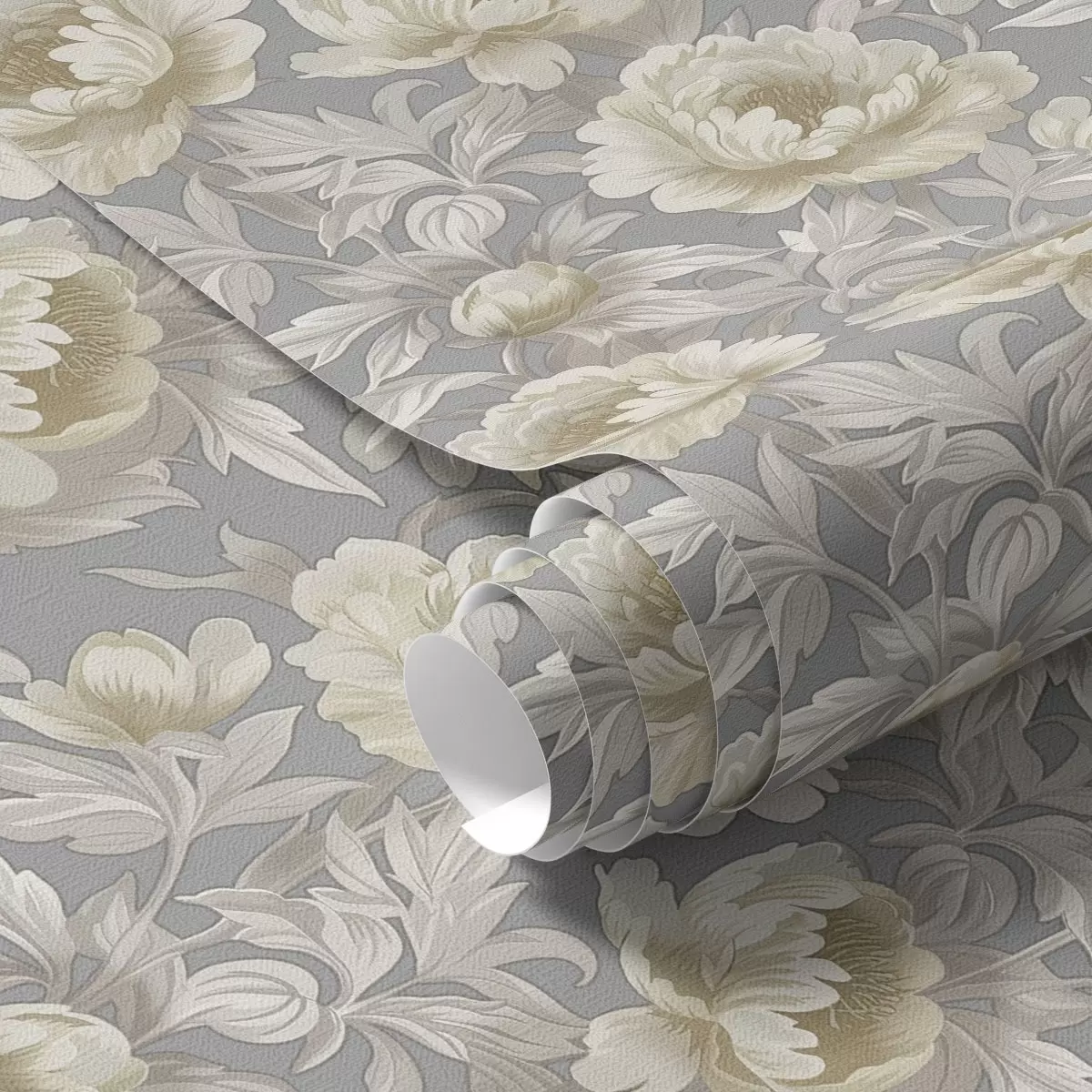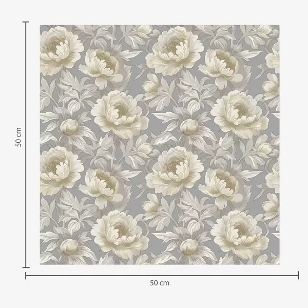 Papel de parede Peónias e folhas exuberantes sobre um fundo cinzento Nr. a00403