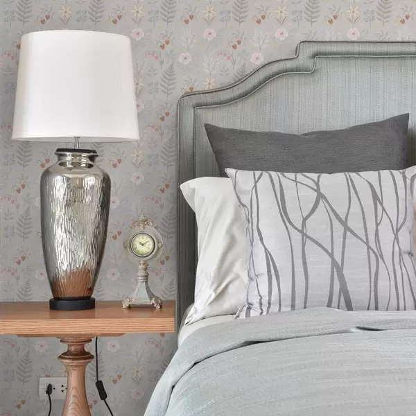Papel de parede Flores e bagas em tons pastel sobre um fundo cinzento claro Nr. a00406