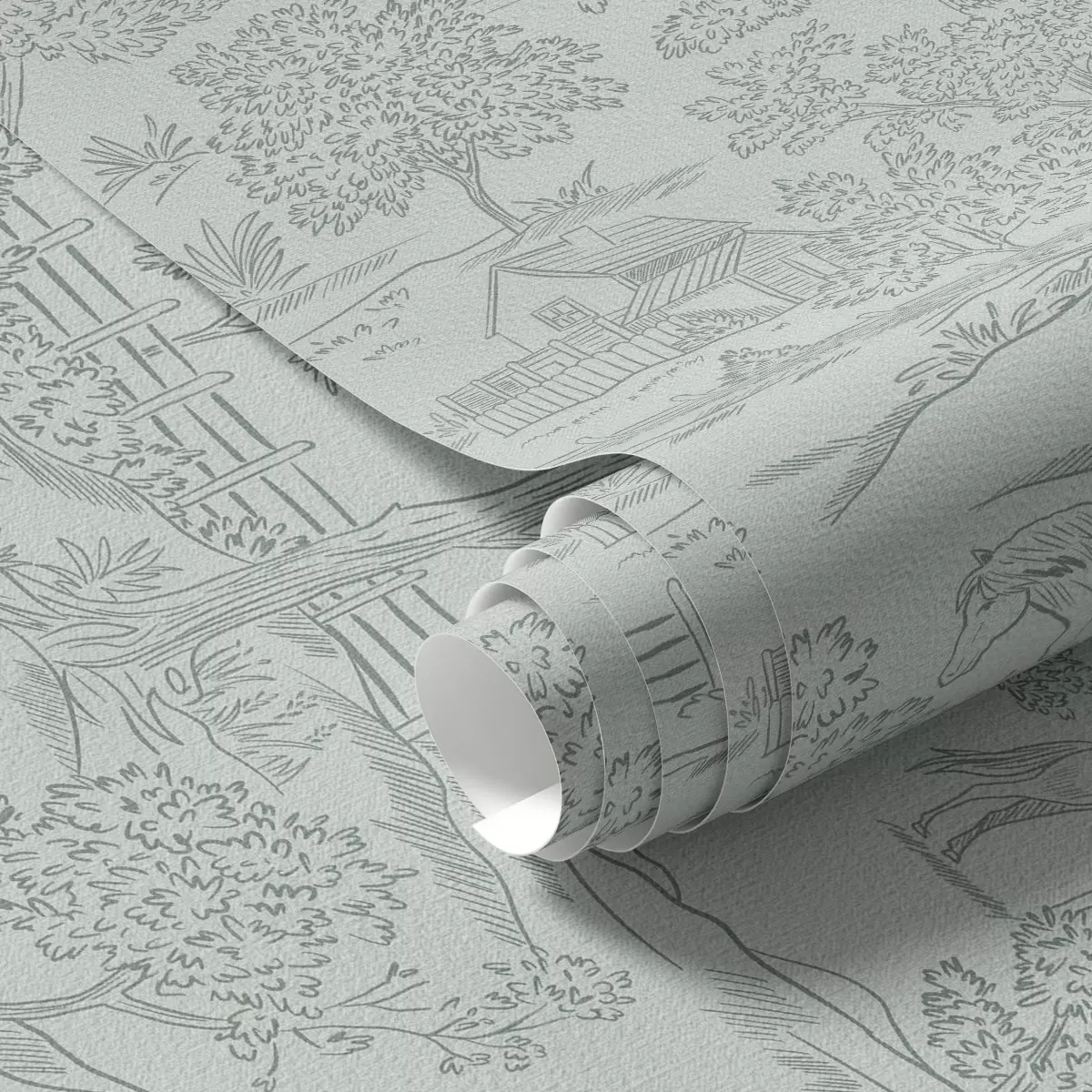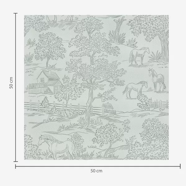 Papel de parede Paisagem verde monocromática com cavalos e casas de campo Nr. a00407