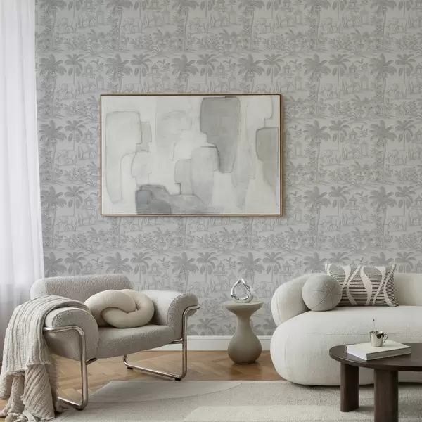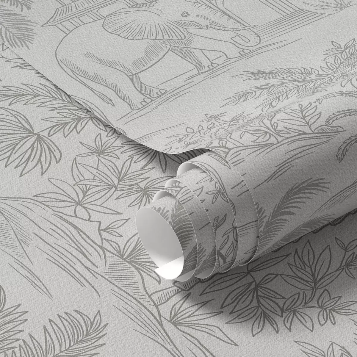 Papel de parede Elefantes monocromáticos e selva em estilo gráfico Nr. a00410
