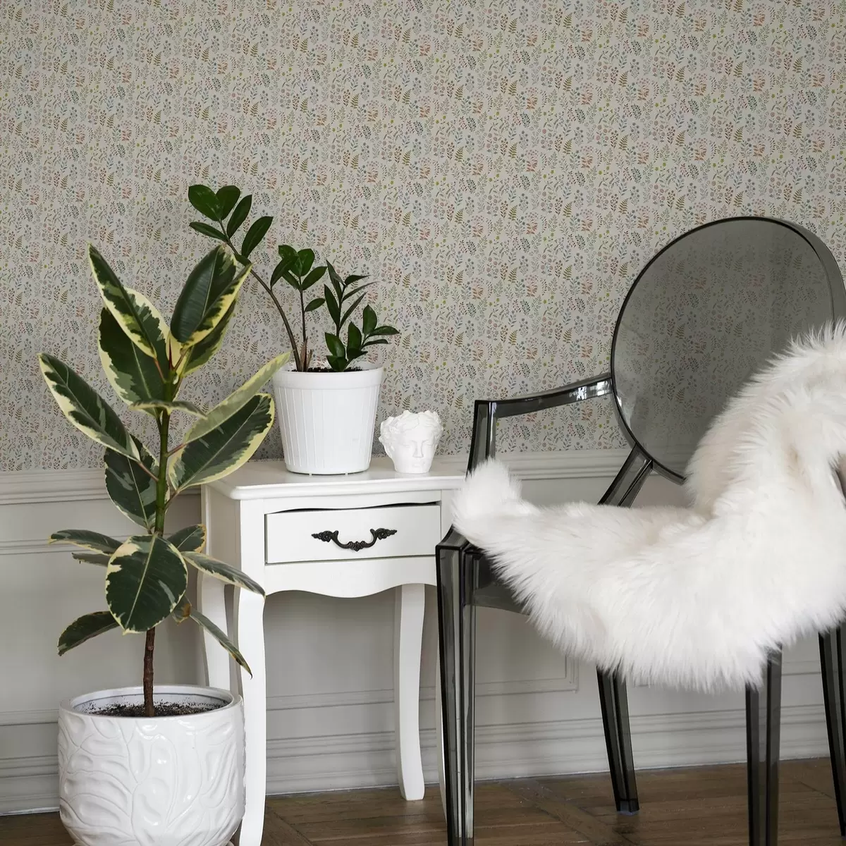 Papel de parede Plantas coloridas sobre um fundo branco axadrezado Nr. a00413