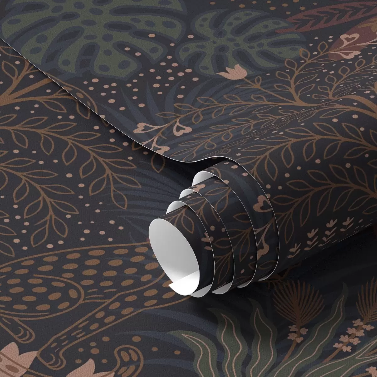 Papel de parede Selva escura com leopardos, palmeiras e flores Nr. a00424