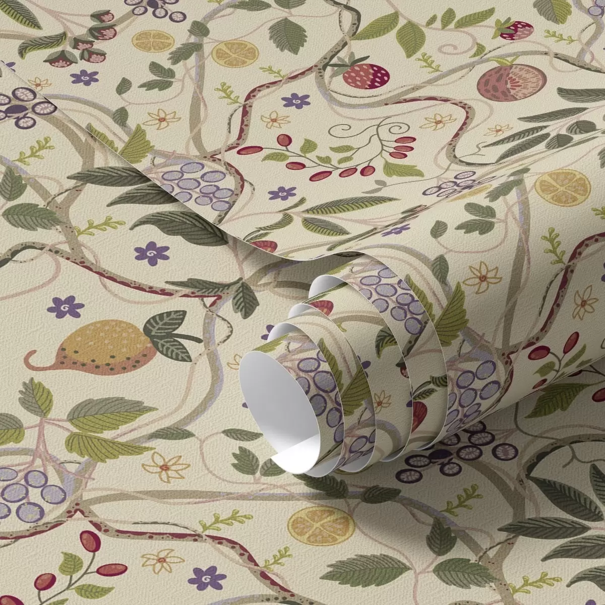 Papel de parede Padrão de frutos com bagas, ramos e flores Nr. a00428