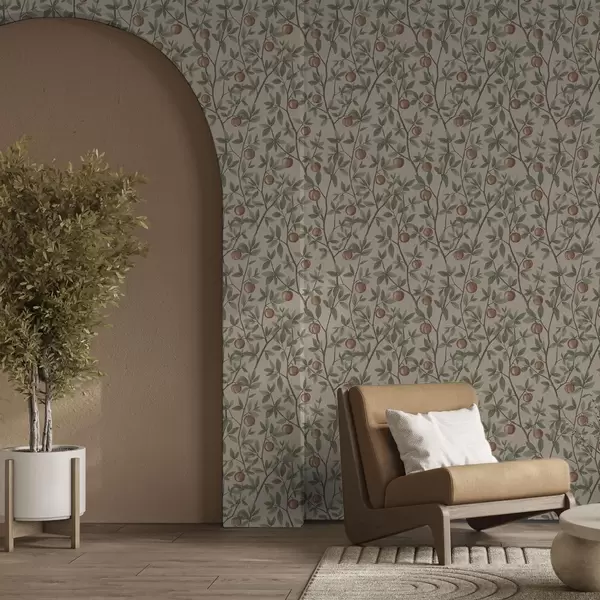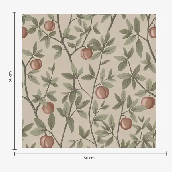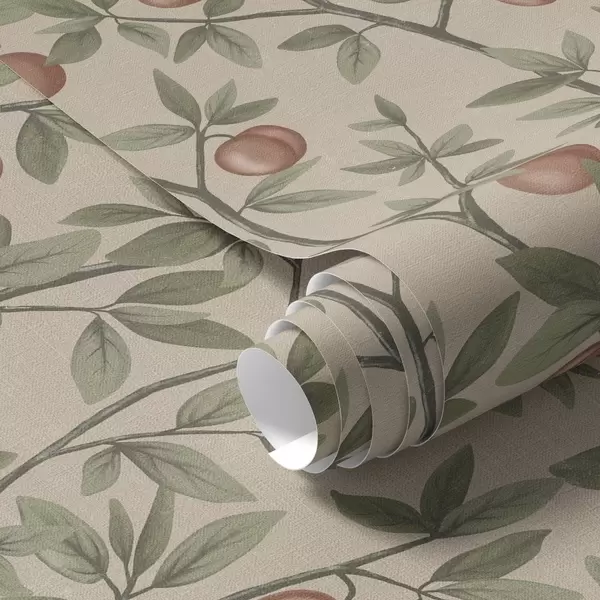 Papel de parede Pêssegos em ramos com folhas verdes sobre fundo bege Nr. a00429