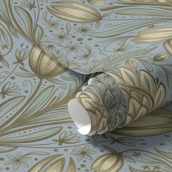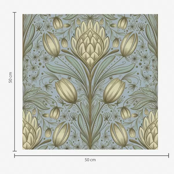 Papel de parede Padrão azul com alcachofras e tulipas Nr. a00435