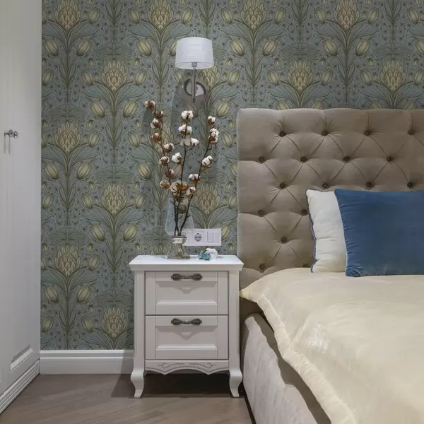 Papel de parede Padrão azul com alcachofras e tulipas Nr. a00435
