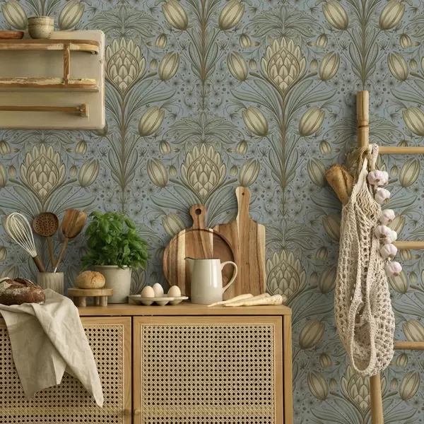 Papel de parede Padrão azul com alcachofras e tulipas Nr. a00435