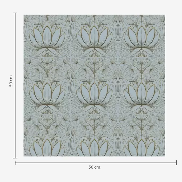 Papel de parede Ornamento de lótus em tons de turquesa e amarelo Nr. a00439