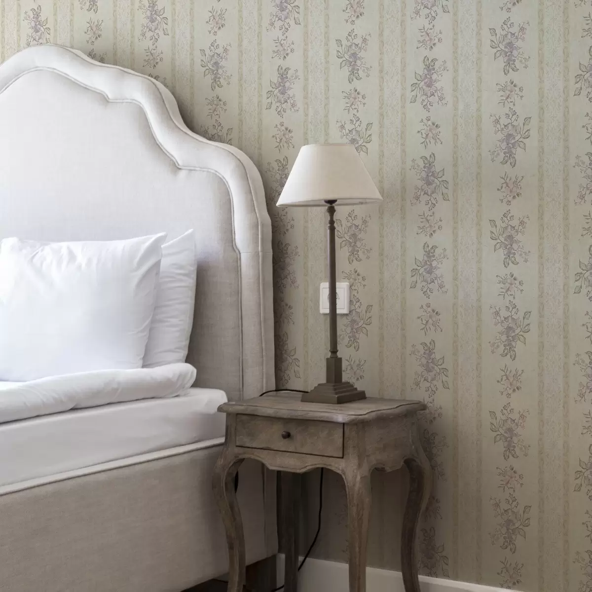 Papel de parede Flores vintage num fundo às riscas com ornamentos Nr. a00440