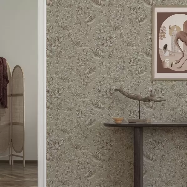 Papel de parede Ramos beges com flores brancas em tons quentes Nr. a00441