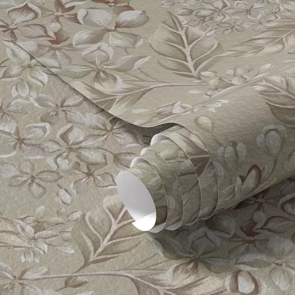 Papel de parede Ramos beges com flores brancas em tons quentes a00441