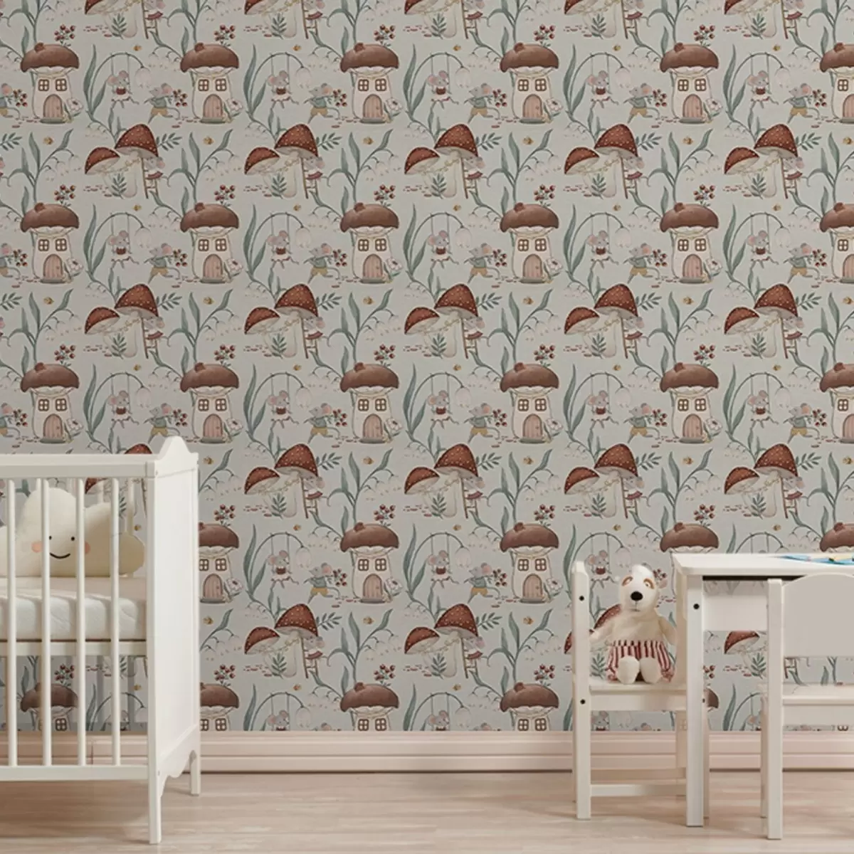 Papel de parede Ratos e cogumelos giros no fundo de uma paisagem de floresta Nr. a00450
