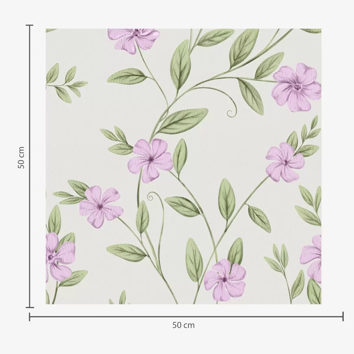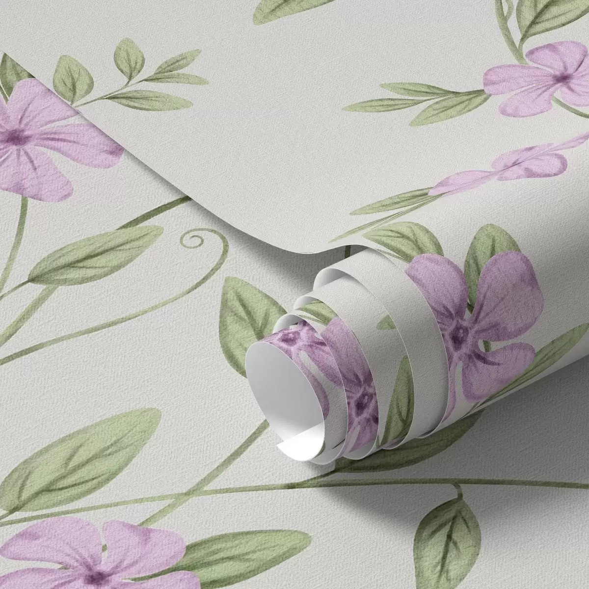 Papel de parede Flores cor-de-rosa com trepadeiras verdes sobre um fundo creme Nr. a00453