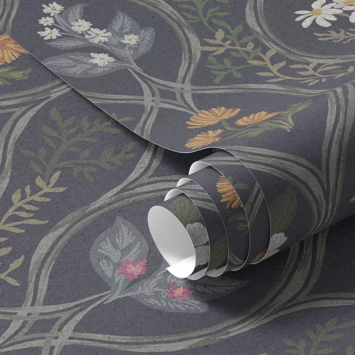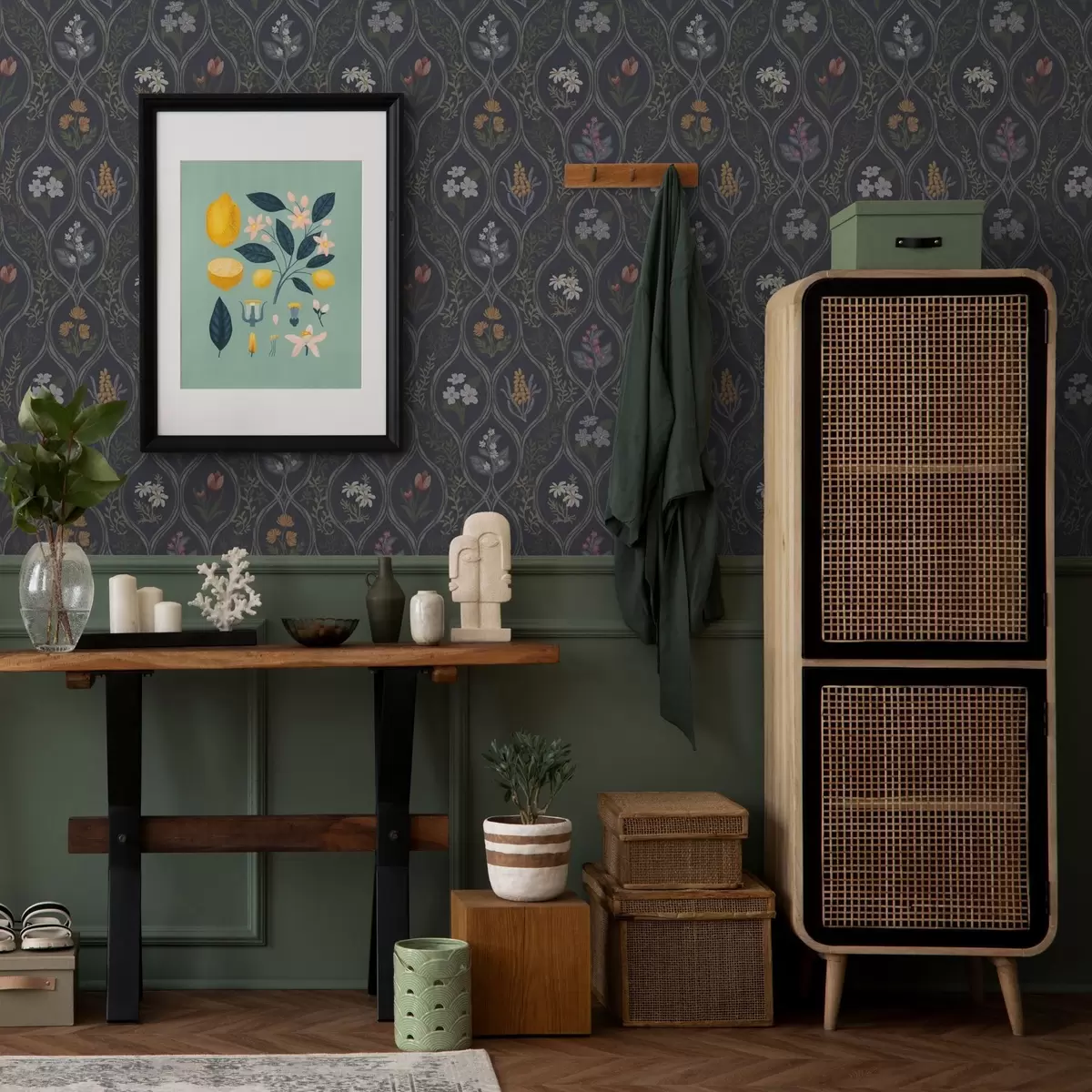 Papel de parede Moldura vintage escura com flores de jardim coloridas Nr. a00454
