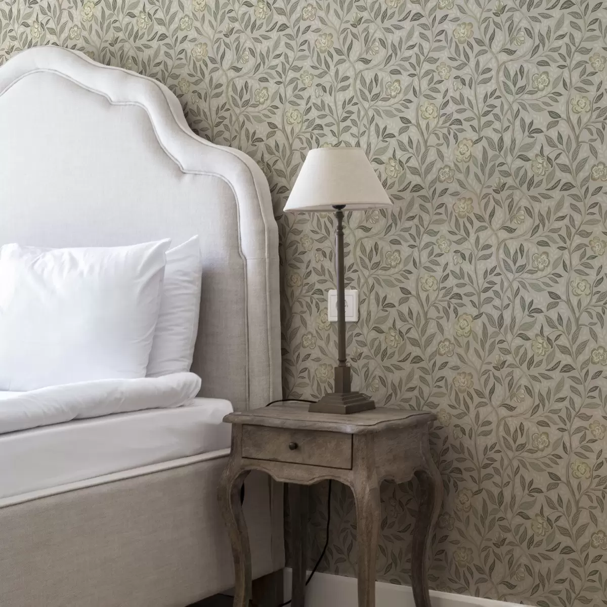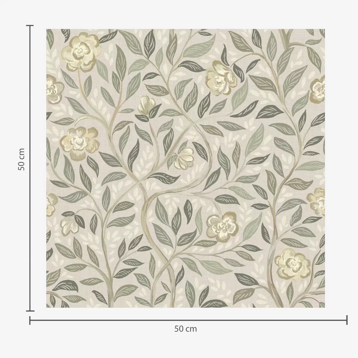 Papel de parede Rosas creme e folhas de oliveira sobre fundo cor-de-rosa empoeirado Nr. a00455