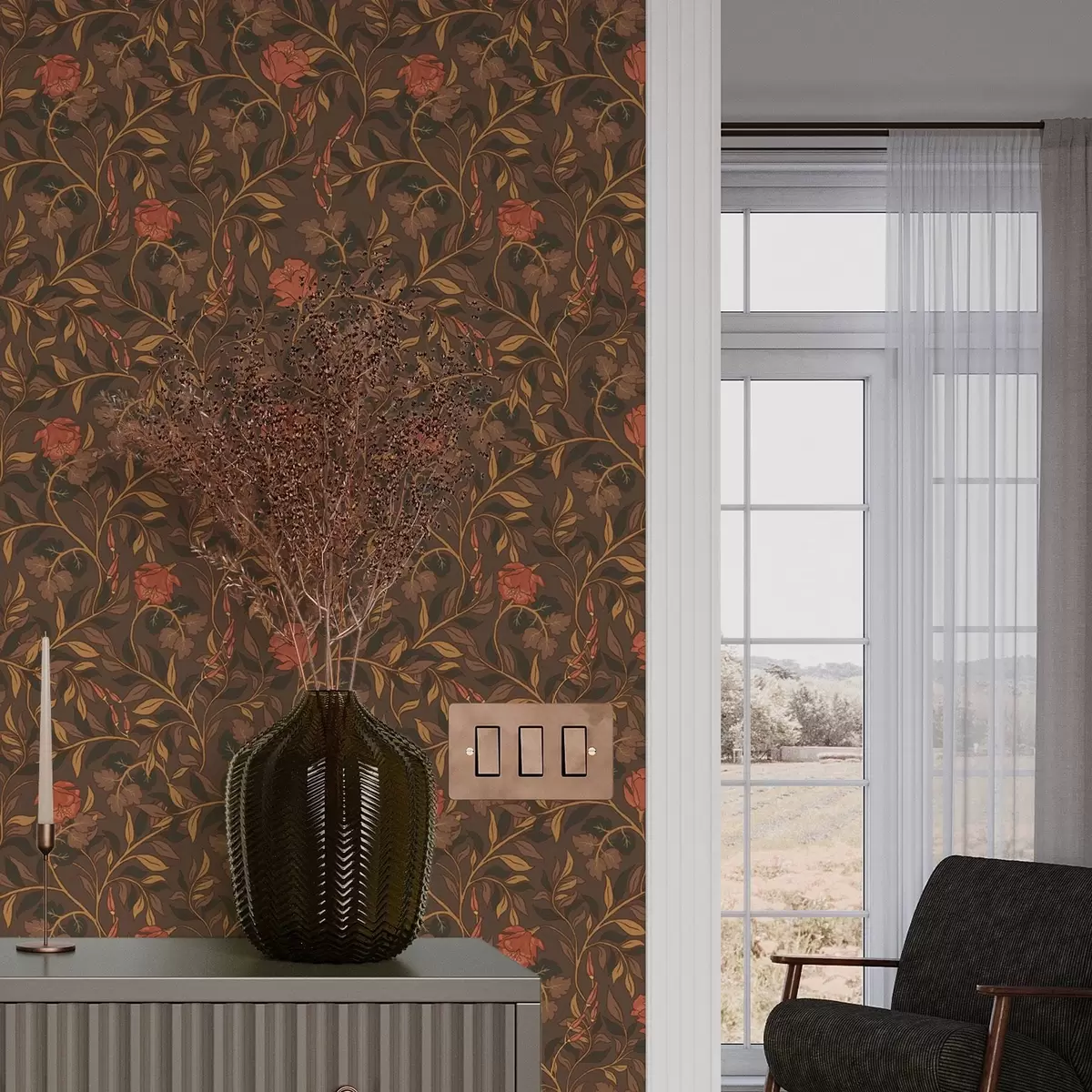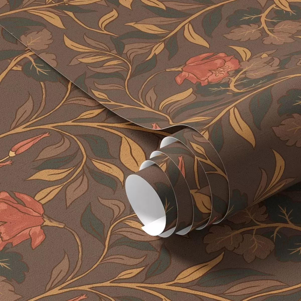 Papel de parede Ramos de terracota a florir sobre um fundo castanho Nr. a00460
