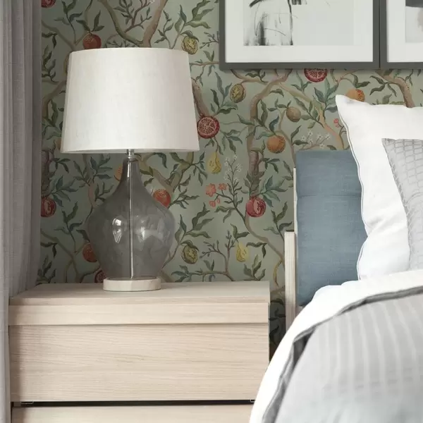 Papel de parede Frutos de romã, pêras e flores sobre um fundo verde claro Nr. a00465